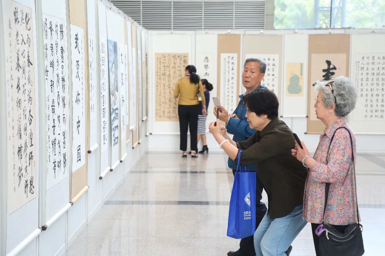 随后,在教工书法协会会长倪文东教授的陪同下,李晓兵副书记和参加活动的教职工兴致勃勃地参观了书法绘画摄影展,大家在一幅幅作品前驻足欣赏、观摩交流,仿佛置身于书画摄影艺术的殿堂。作品贴近时代、贴近生活、内容丰富、题材新颖,不同风格的作品交相辉映,描绘出不同的艺术韵味,抒发了北师大教职员工爱党、爱国、爱校的真情实感,反映出北师大积极向上、意气风发的精神风貌。