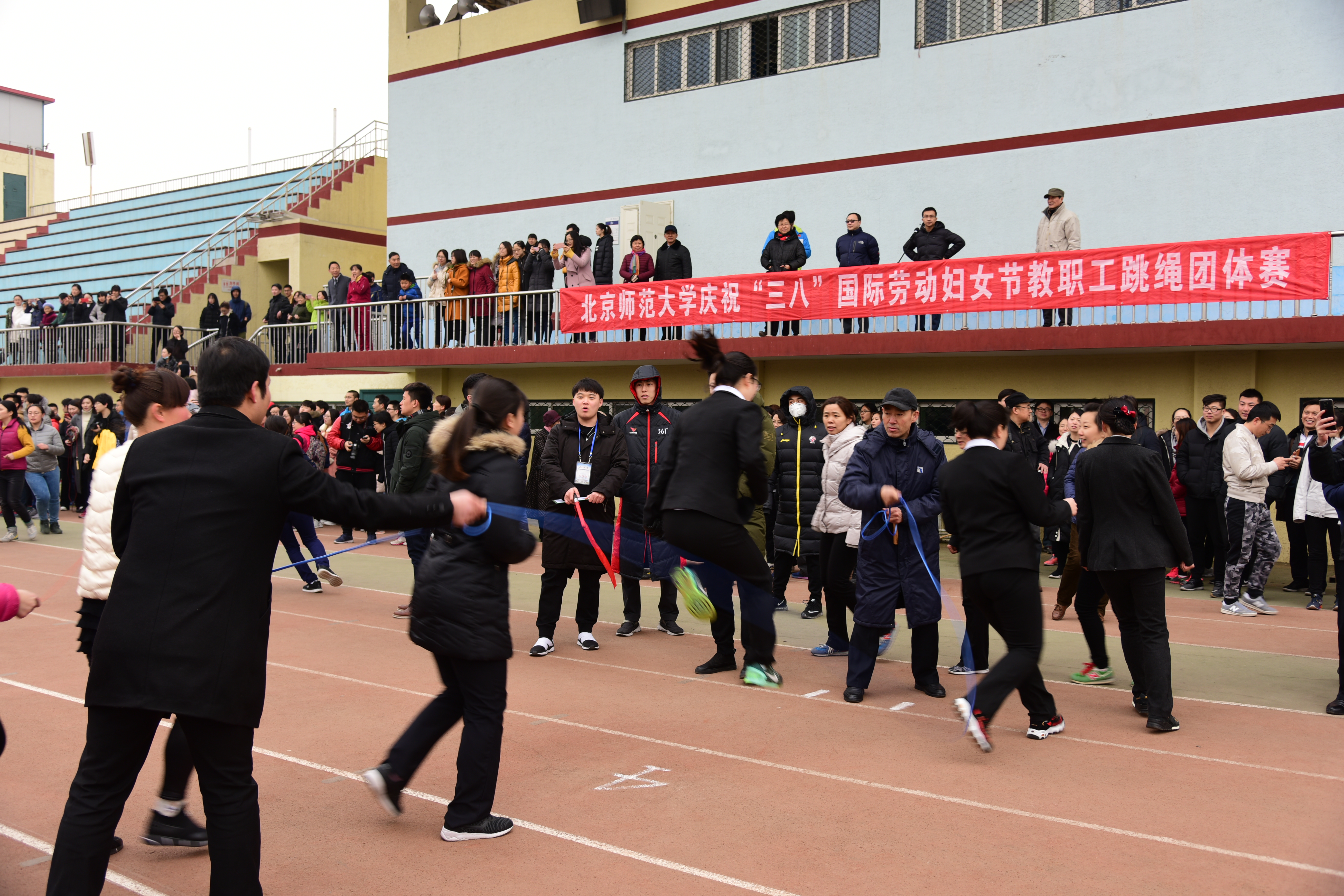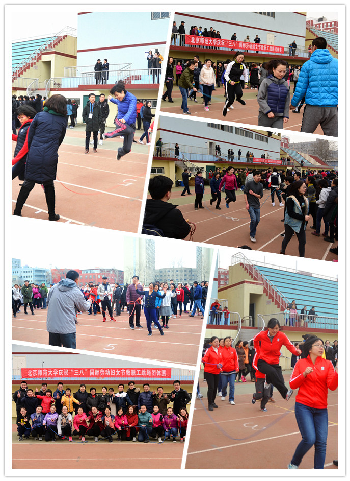 3月7日的北京,天气乍暖还寒,学校东操场内人潮涌动、欢快热烈。为庆祝第108个“三八国际劳动妇女节”,丰富教职工校园文化生活,下午3点半,校工会在这里举行了一年一度的传统体育活动--庆祝“‘三八节’教职工跳绳团体赛”。比赛以“大家一起来,生活更精彩”为主题,来自全校43个部门工会的59支代表队,900余名教职工参加活动,是历史上跳绳比赛参加活动人数最多的一次。比赛由校工会副主席张良博主持。