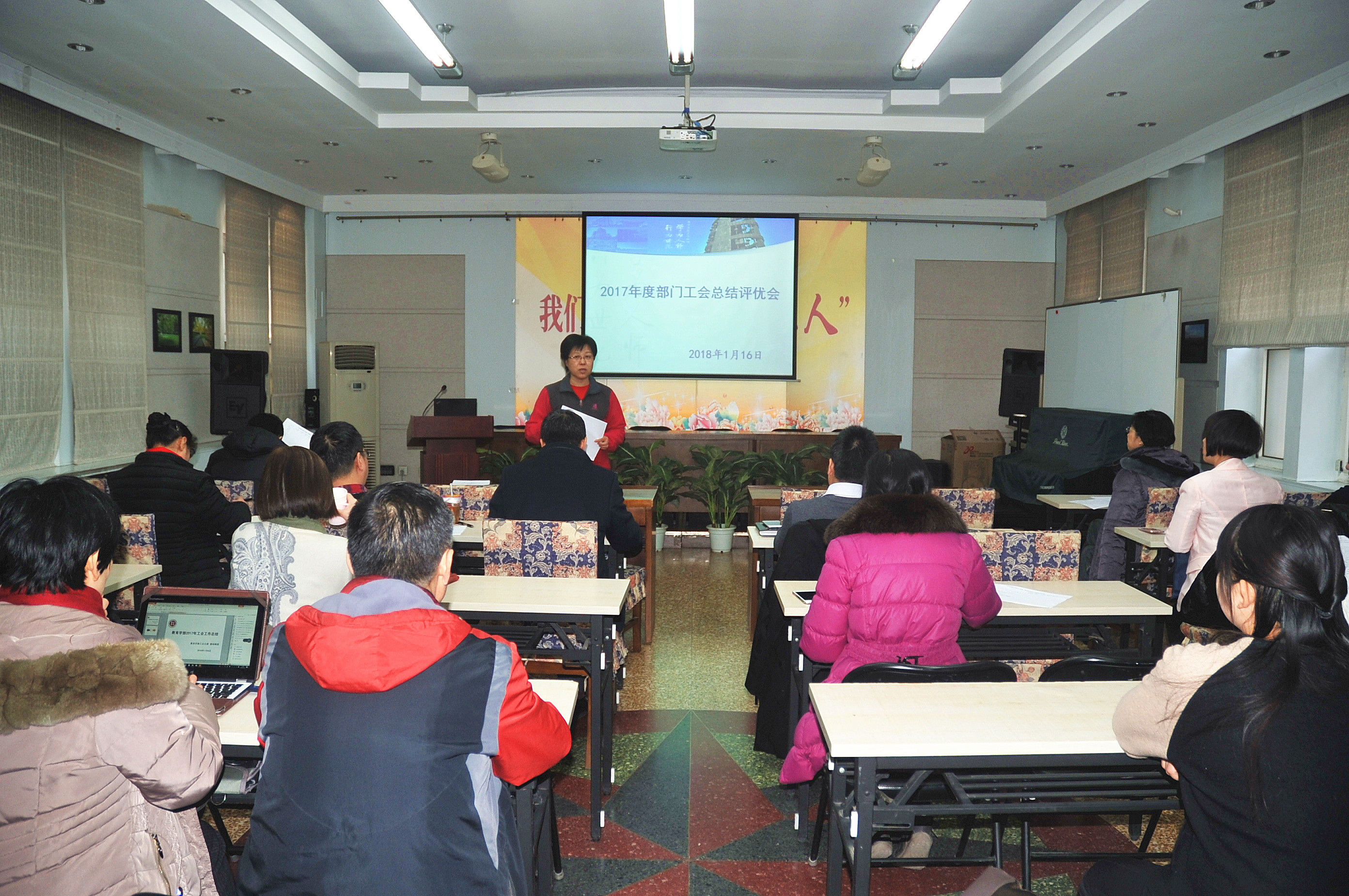 2018年1月16日下午,校工会召开2017年度部门工会工作总结评优会。校工会常委及部门工会主席、委员等40多人参加评优会。总结评优会由校工会常务副主席王琼主持。