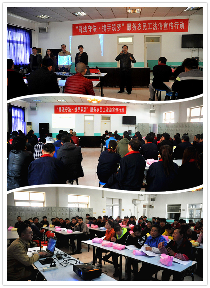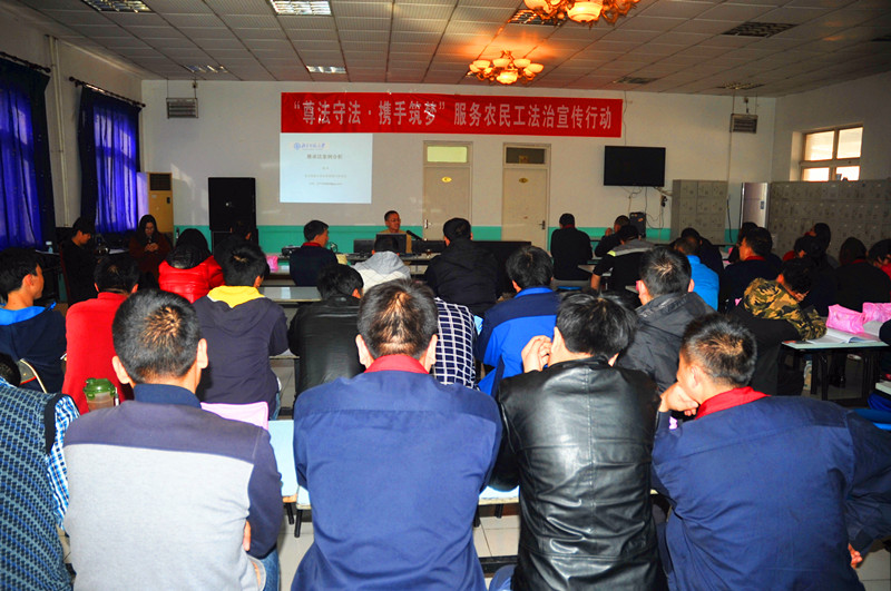 为深入学习宣传、贯彻落实党的十九大精神,学校积极相应全国总工会和教育部关于开展服务农民工法治宣传行动的要求和号召,11月1日,由我校组织开展的“尊法守法•携手筑梦”服务农民工法治宣传行动第二场报告会在昌平区崔村镇北师大出版集团京师印务有限公司举行,来自该公司印刷车间和装订车间的160多名农民工朋友参加了活动。