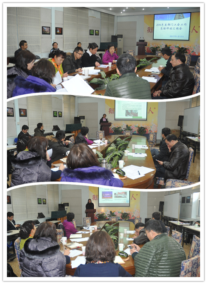 2017年1月13日, 校工会召开2016年度部门工会工作总结评优会。校工会常委、委员及部门工会主席、委员等40多人参加评优会。总结评优会由校工会常务副主席王琼主持。