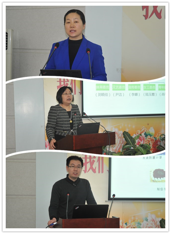 会上,各部门工会汇报了2016年度部门工会工作,同时还进行了 2016年度先进部门工会和特色活动奖评选活动,共有27个部门工会分别申报了2016年度“优秀部门工会”和“特色活动奖”。大家先后发言,对一年来部门工会工作及特色活动进行了汇报。2016年度部门工会工作总结及特色活动涵盖各类文体活动、关爱教职工身心健康、教职工岗位技能提升、服务型工会创新项目、学术沙龙、和美家庭评选、教职工证件风采照等不同形式的内容。其中,有的结合专业特点,在轻松的氛围中开展学术交流;有的突出团结和谐主题,想方设法为教职工营造温暖、轻松的业余文化生活;有的强调多方协作,充分利用团队的力量打造精品服务品牌;有的是校工会特色活动的有益延伸。各部门工会活动参与度广泛,活动内容丰富、创意新颖,丰富了教职工业余文化生活,深受各部门教职工的欢迎。