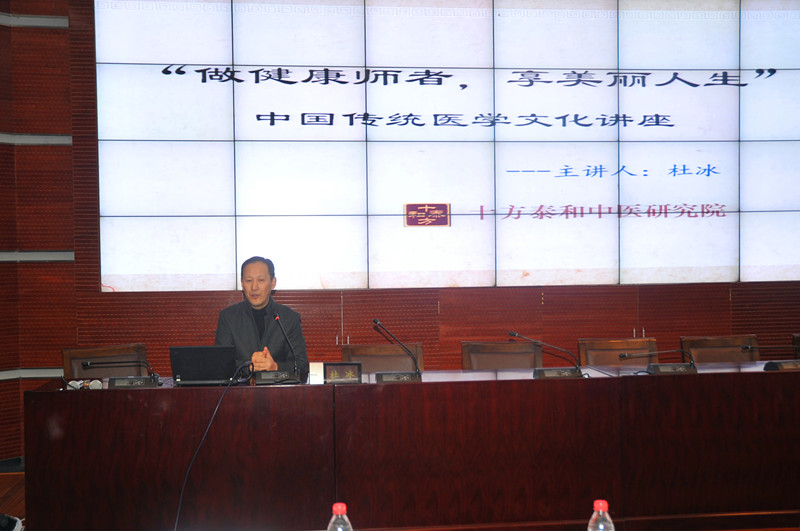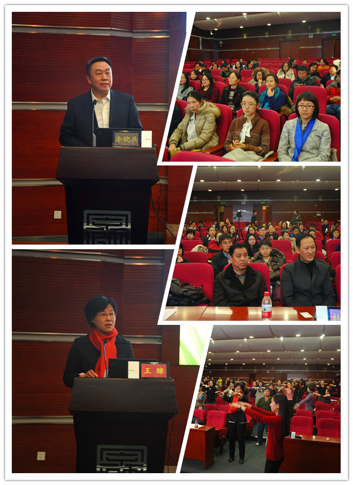 1月14日下午, 由校工会、全国教师志愿联盟办公室联合策划的“健康师者”行动计划暨“做健康师者享美丽人生”传统医学文化专题讲座在图书馆三层会议室举行。校党委副书记李晓兵,校工会常务副主席王琼、校工会专职干部、各部门工会教职工代表,北京十方泰和中医研究院杜冰院长及其团队共计150余人参加启动仪式。