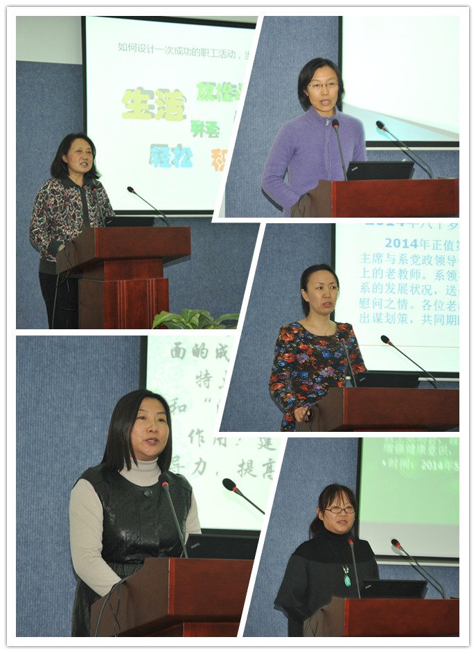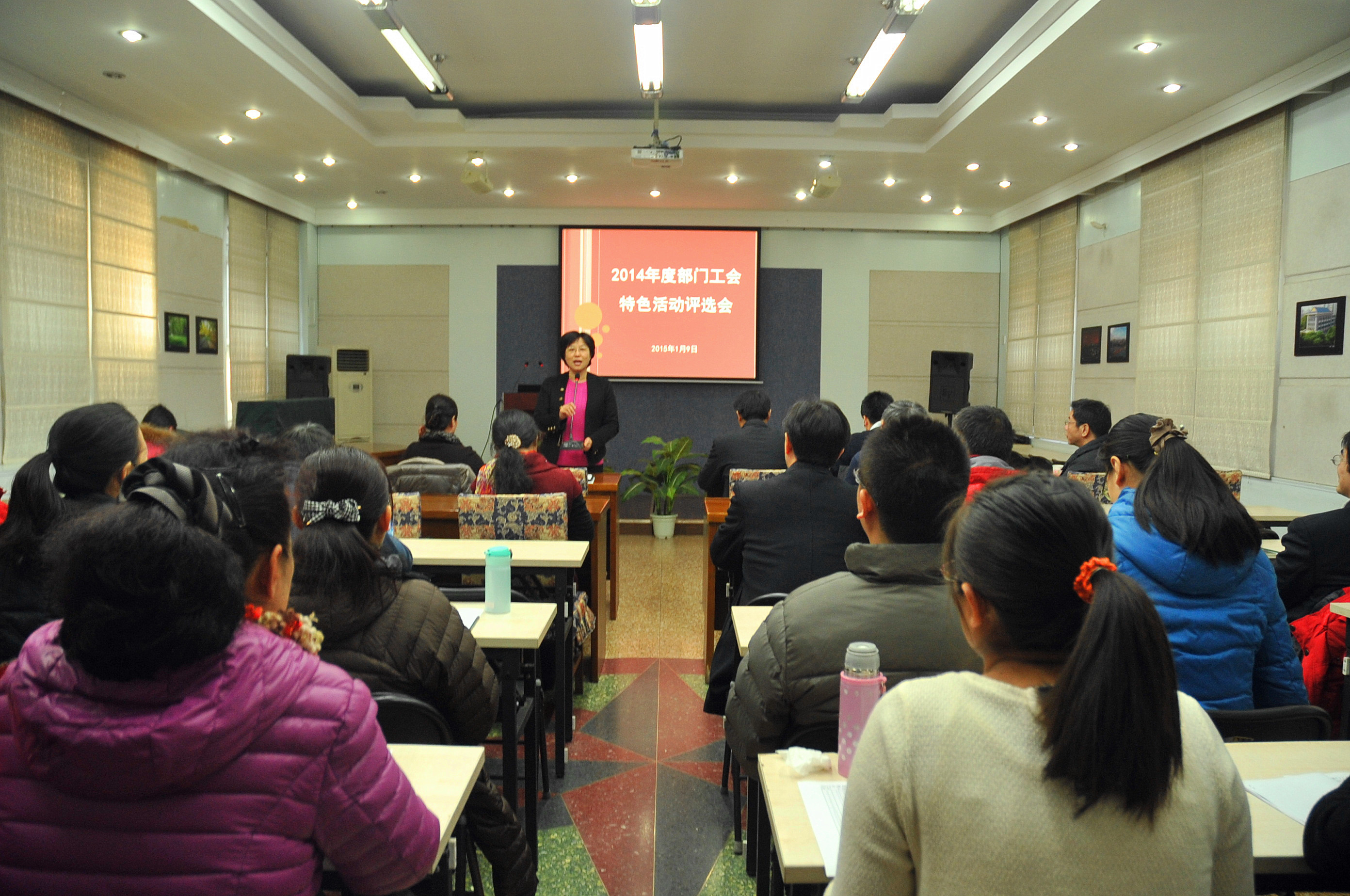 本年度共有28个部门工会进行特色活动申报。按照会前抽签顺序,28个单位的部门工会主席及相关代表先后发言,对一年来部门工会特色活动进行了汇报。2014年度部门工会特色活动涵盖各类文体活动、关爱教职工身心健康、教师专业成长及素质拓展、服务型工会创新项目等不同形式的内容,其中有的紧密结合专业特点,寓学术于特色之中;有的是在常规性活动的基础上的内容深化,增加难度和趣味性;有的是校工会特色活动的有益延伸,提高了广泛参与度,活动内容丰富、创意新颖、参与面广,丰富了教职工业余文化生活,深受各部门教职工的欢迎。