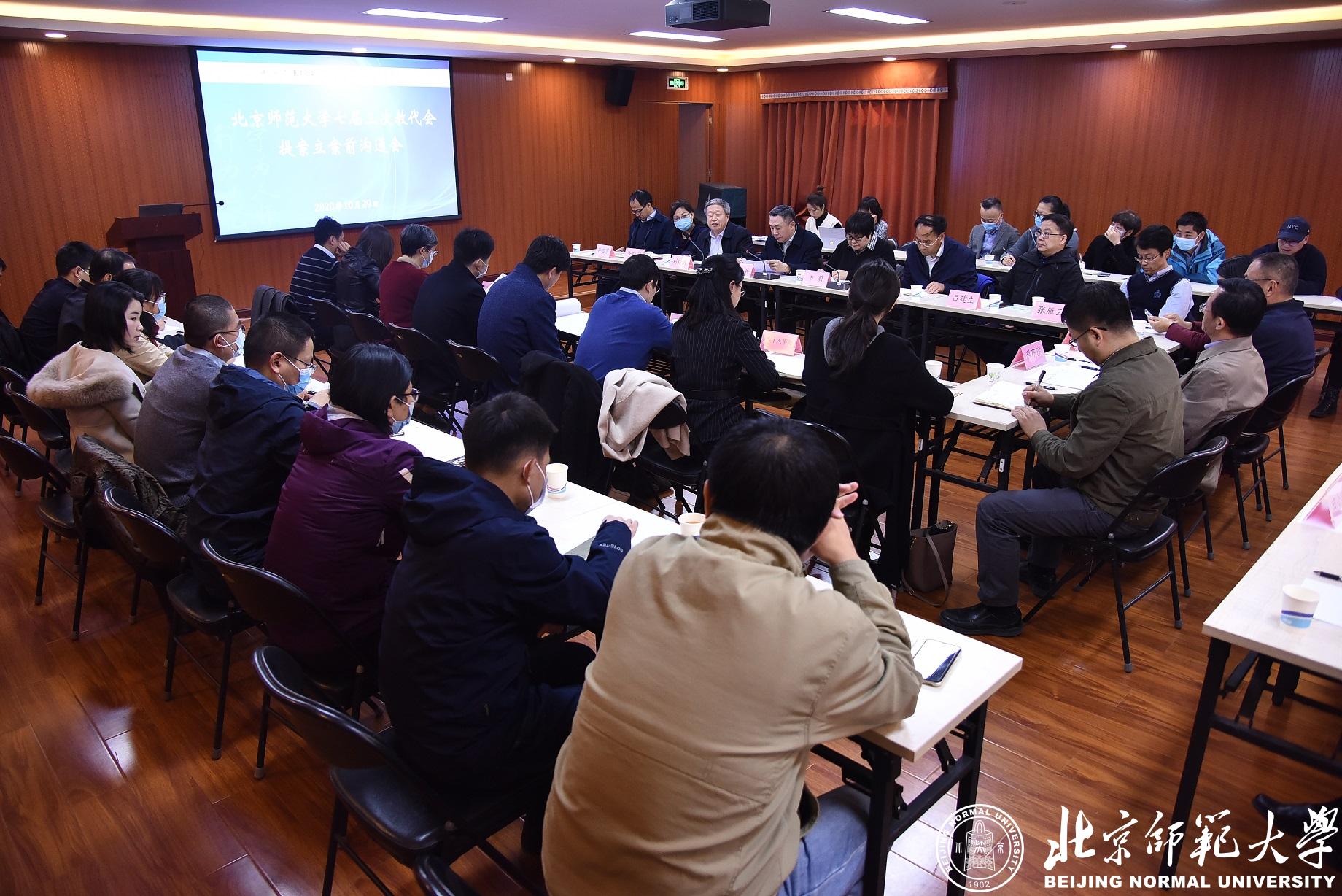 10月29日,北师大七届三次教代会暨十五届三次工代会提案立案前沟通会在校工会报告厅举行。校党委副书记李晓兵,教代会执委、提案工作委员会委员、校工会委员、教代会提案人代表、部门工会主席以及职能部处负责人等40余人参加会议。会议由教代会执委会副主任、校工会常务副主席刘建武主持。