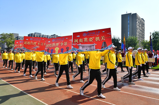 4月26日,为期两天的北京师范大学2019年运动会在学校东操场开幕,本次运动会以“育英才创一流、无体育 不教育、奔跑吧 BNU、致敬我的祖国”为主题。在工会的组织下,机关一各单位的老师们积极响应学校以运动会为契机,树立正确的健康理念,以良好的精神风貌,加快推进世界一流大学建设的号召,认真备赛,踊跃参赛。
