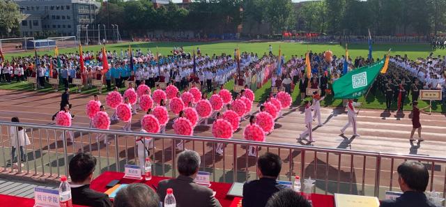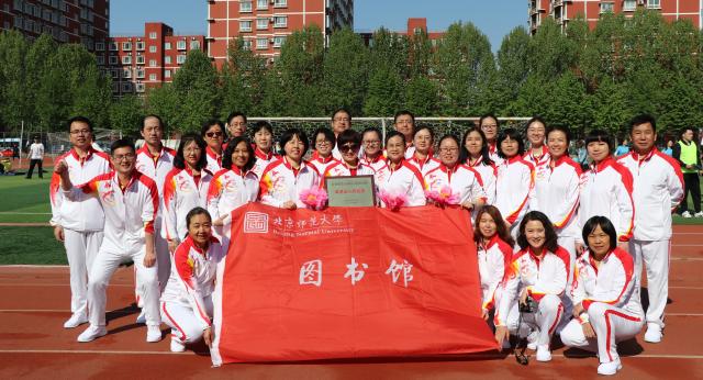 北京师范大学校运动会于4月26日拉开帷幕。在开幕式上,图书馆39名馆员身着崭新的红白相间运动服,手持粉色阳伞,迈着青春的步伐,昂首挺胸地进入会场。迎着早春和煦的阳光,伴着响亮的口号,一把把带黄蕊红花的阳伞,一开一合,齐齐转动,像一簇簇盛开的鲜花,给人们带来浓浓的春意。图书馆队精彩的表现征服了评委和广大师生观众,并荣获了运动会最精彩入场式奖。