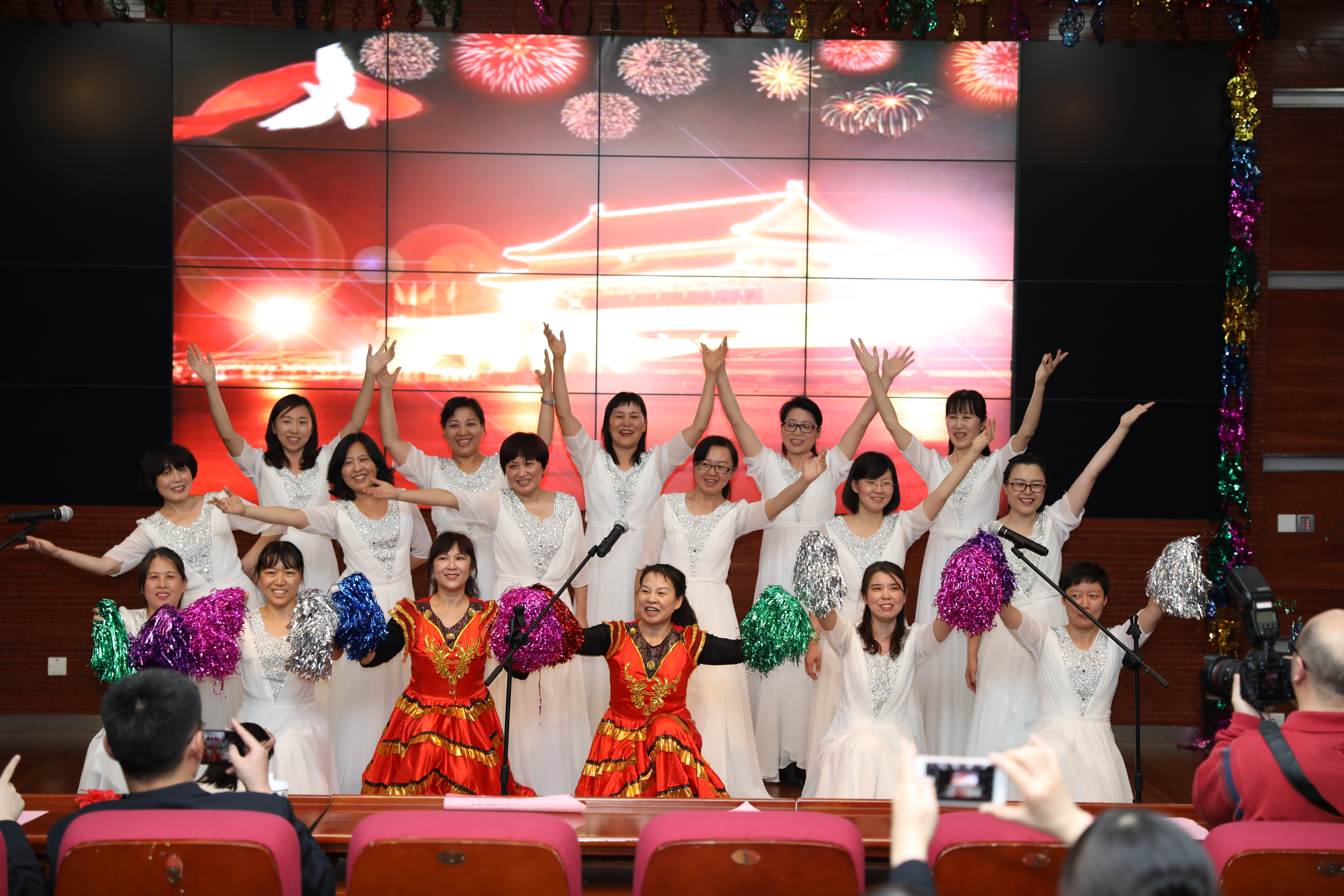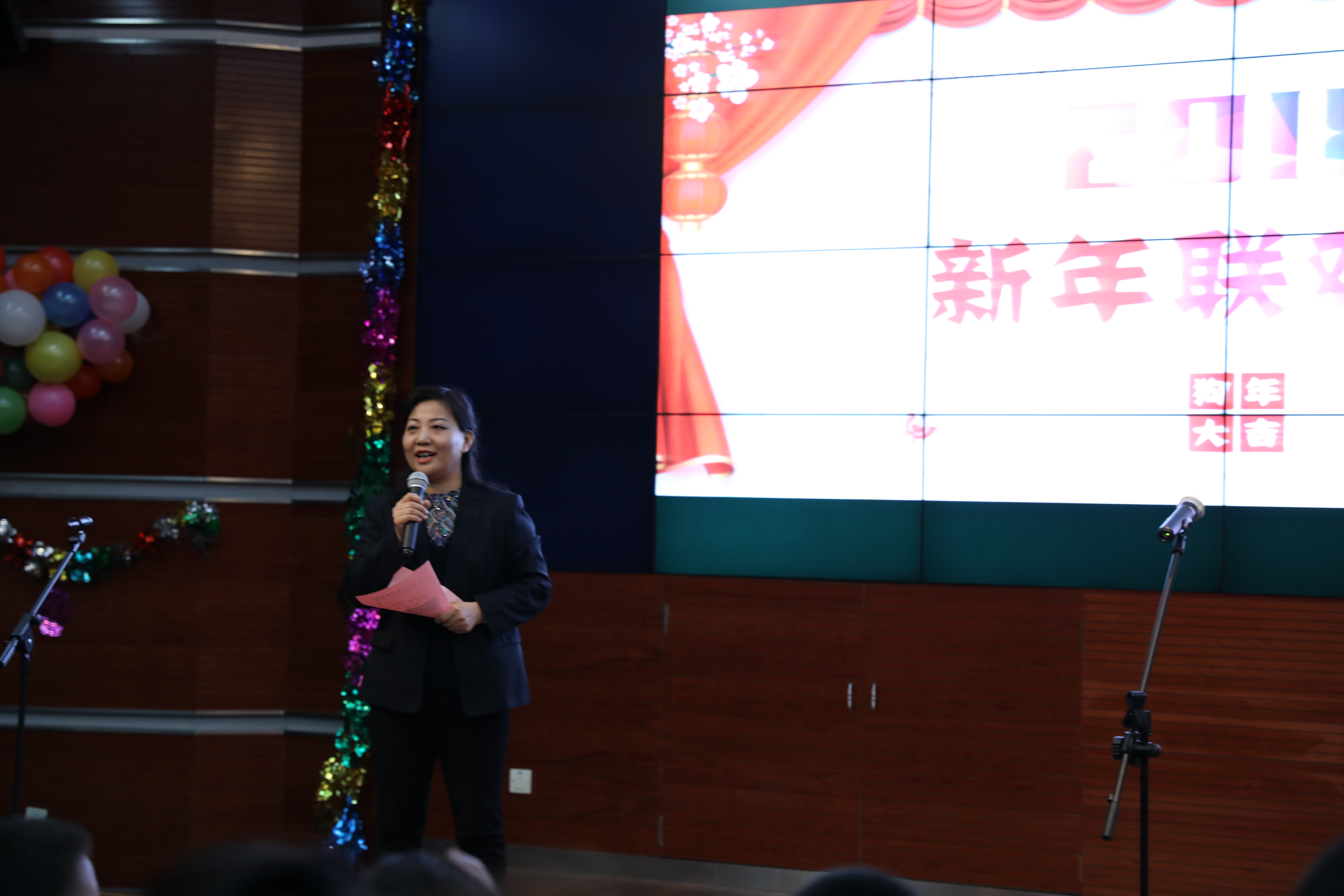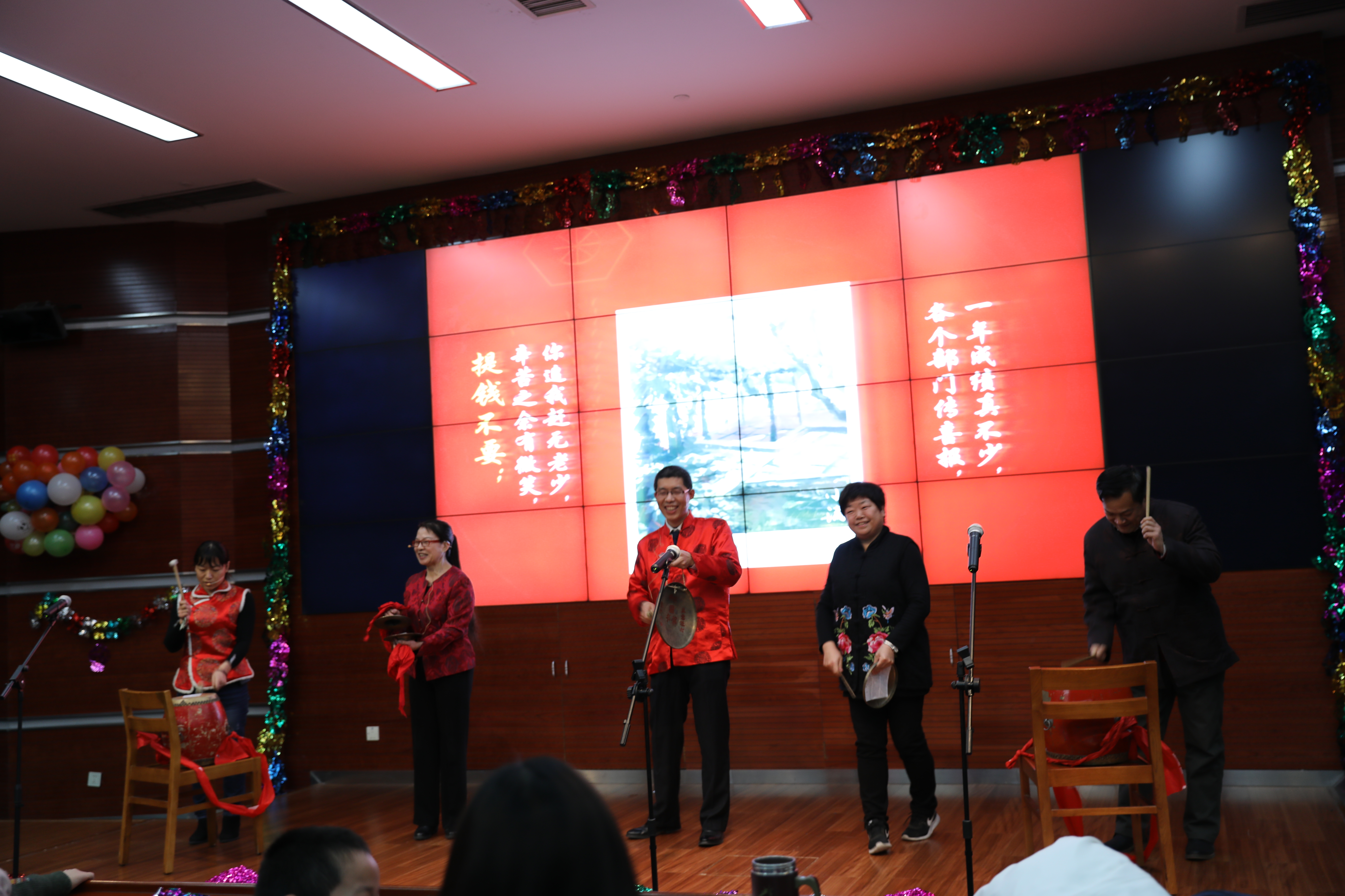 1月23日下午1点半,图书馆三层报告厅里洋溢着浓浓的节日氛围,2018年图书馆新春联欢会如约而至。 联欢会在综合保障部的节目《四句半》中拉开了帷幕。节目编排巧妙,妙语连珠,笑声不断,让整场活动进入到欢乐的氛围中。接下来分党委书记李晓娟致新年致辞,并送上新年祝福和美好祝愿。 馆长办公室表演的《外婆的澎湖湾》带大家回到了童年时光。节目前半段为小品,分为4个小片段,分别讲述了孙女从小学到成人的过程中与外婆相处的点滴,最后大家合唱歌曲。节目感动人心,让大家深有感触。 给9位属狗的馆员们颁发纪念品后,文献建设部舞蹈《翻身农奴把歌唱》让我们感受到了西藏农奴得解放的欢欣鼓舞,感受那来之不易的自由与幸福。经历了苦难,重获新生后的喜悦才更加动人。来自文献借阅部的配乐诗朗诵《撸起袖子加油干》,更让人精神振奋。 “泡泡糖”是联欢会的第一个游戏环节。主持人随机想到身体的某个部位,台上的人就要两人一组互相接触主持人说的部位,而没有找到同伴的人被淘汰出局。搞怪的动作引来大家的笑声,气氛十分热烈。 游戏过后,系统技术部的王琳老师独唱了电影《盗墓笔记》的主题曲《无问》,展现出馆员个人的演唱才能与魅力。随后,古籍特藏部的美女老师们带来热辣的《Hot N Cold》,青春无限,动感十足。 接下来的游戏环节《萝卜蹲》又把会场气氛推向高潮。紧张的游戏结束后,系统技术部和特色资源建设中心共同带来《搞笑小人舞》,新颖的表演形式给大家带来新鲜的体验。文献借阅部的于卫华老师献唱《不忘初心》《绒花》两首歌曲,歌声优美,宝刀未老。信息服务部将图书馆元素融入《抖肩舞》,带来《不如跳舞》,舞蹈动作给老师提供了新的放松方式。 书尚公司表演歌曲《我爱你中国》,并做了书法展示,让大家收获了祖国各地的感人故事。随后大家共同为馆员庆祝“整十生日”,今年整十生日的共有5位老师,为他们颁发纪念品后,联欢会进入尾声,迎来了压轴表演《清晨我们踏上小道》及《今夜无眠》,表演者是我馆的重量级的演出阵容——合唱队。他们为了给大家呈现出好的演出,经常利用休息或者吃饭的时间进行排练。表演清新,歌曲优美,大家深深的陶醉其中。 美好的时光总是短暂的,伴随着晚会现场的欢声笑语,满载着温暖和谐的新年祝福,图书馆2018年新春联欢会圆满结束。