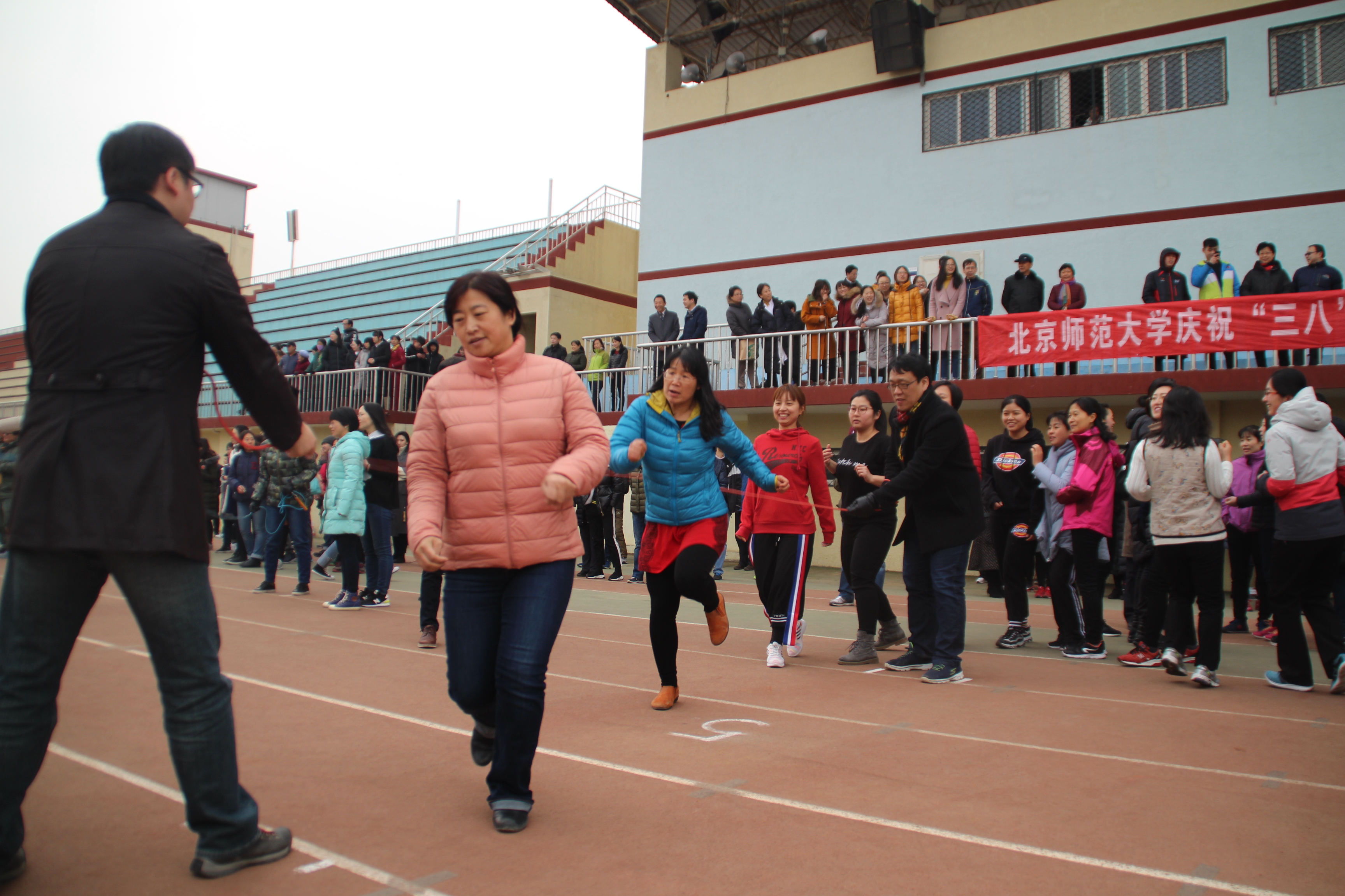 为庆祝“三八”国际劳动妇女节,展示教职工阳光健康的精神面貌,我校一年一度的庆“三八”教职工跳绳团体比赛在3月7日拉开战幕。今年活动的主题为“健身一起来 生活更精彩”。