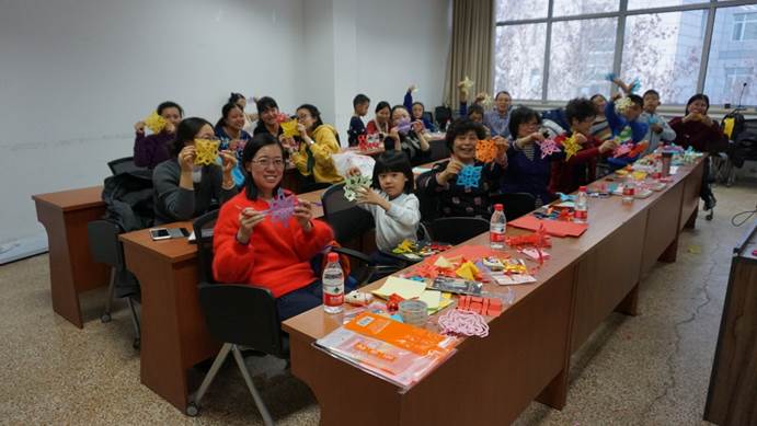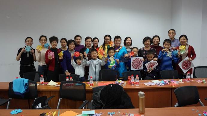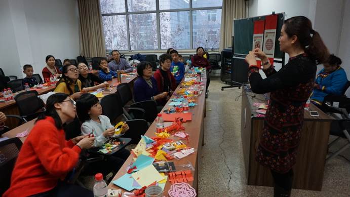 2017年12月22日下午,文学院工会在前主楼5层5043会议室举办了“剪纸民间艺术进校园”活动,特邀国家级非遗传承人、民间剪纸艺术家郑蝴蝶和刘晓迪两位老师进行剪纸教学,文学院工会主席周晓文教授,北京市民间文艺家协会理事、北师大文学院民间文学研究所杨利慧教授,文学院办公室马然主任出席并致辞,我院部分教职工和家属小朋友共计30余人参加了本次活动。
