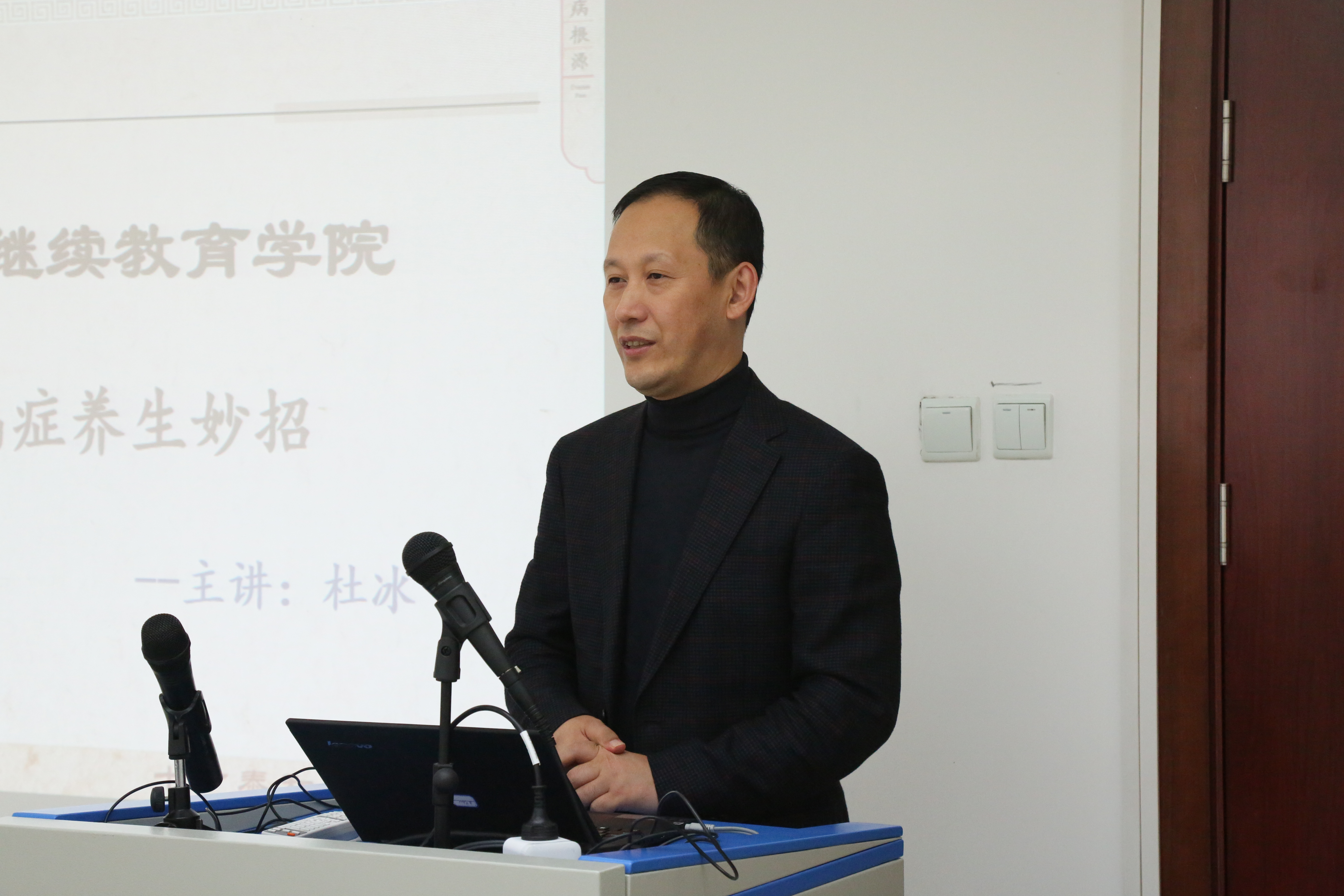 杜冰院长根据五藏五行的对应关系,手把手地向大家传授了五藏经络养生的方法,针对中老年人常见的病症,逐一介绍了按穴的方法及要求、疗效的自我判断标准、自我按摩法的操作要求以及经络养生注意事项。最后,杜院长还为大家送上了节日的祝福,祝愿大家成为健康师者。(来源/继教院办公室 文/王瑞 图/庞秀玲)