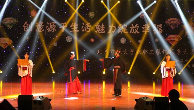 5月31日下午,我校教职工服饰风采大赛在校学生活动中心举行。本次服饰风采大赛的主题为“创意源于生活,魅力绽放幸福”,由校工会主办,共有20支部门工会代表队参赛。图书馆工会代表队在比赛中表现优异,从20支参赛队伍中脱颖而出,荣获二等奖(第一名)和最佳创意奖。