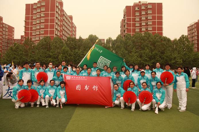 开幕式后,参加入场式的馆员们纷纷到操场参加体能测试和趣味运动项目。图书馆的14位馆员在16个项目上获得名次,为图书馆争得荣誉。负责后勤保障的糜凯老师坚守着图书馆的大后方,为大家即时送上贴心的服务。