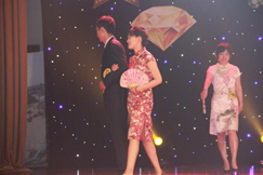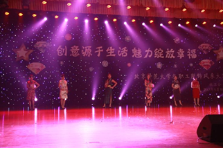 开篇,杨硕尧、李晓文、刘珊珊、李多、梁颖、刘园园六位老师,一袭旗袍,伴随着古筝曲顺序出场;纸扇轻摇,唯美、自然,象征着文明古国历史上曾经的和平、徇烂。