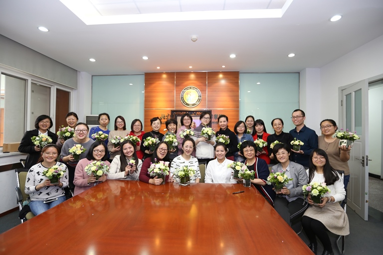 2017年4月1日,由生命科学学院工会举办的“插花培训与艺术欣赏”活动在生科院116举办。此次活动特别邀请到北京插花协会会员、木元花艺设计师谢晓彤老师讲解与演示插花艺术。此次活动亦是生科院工会为庆祝三·八国际劳动妇女节而举办的“高雅艺术熏陶计划”系列活动之一。学院近30名教师参加了活动。