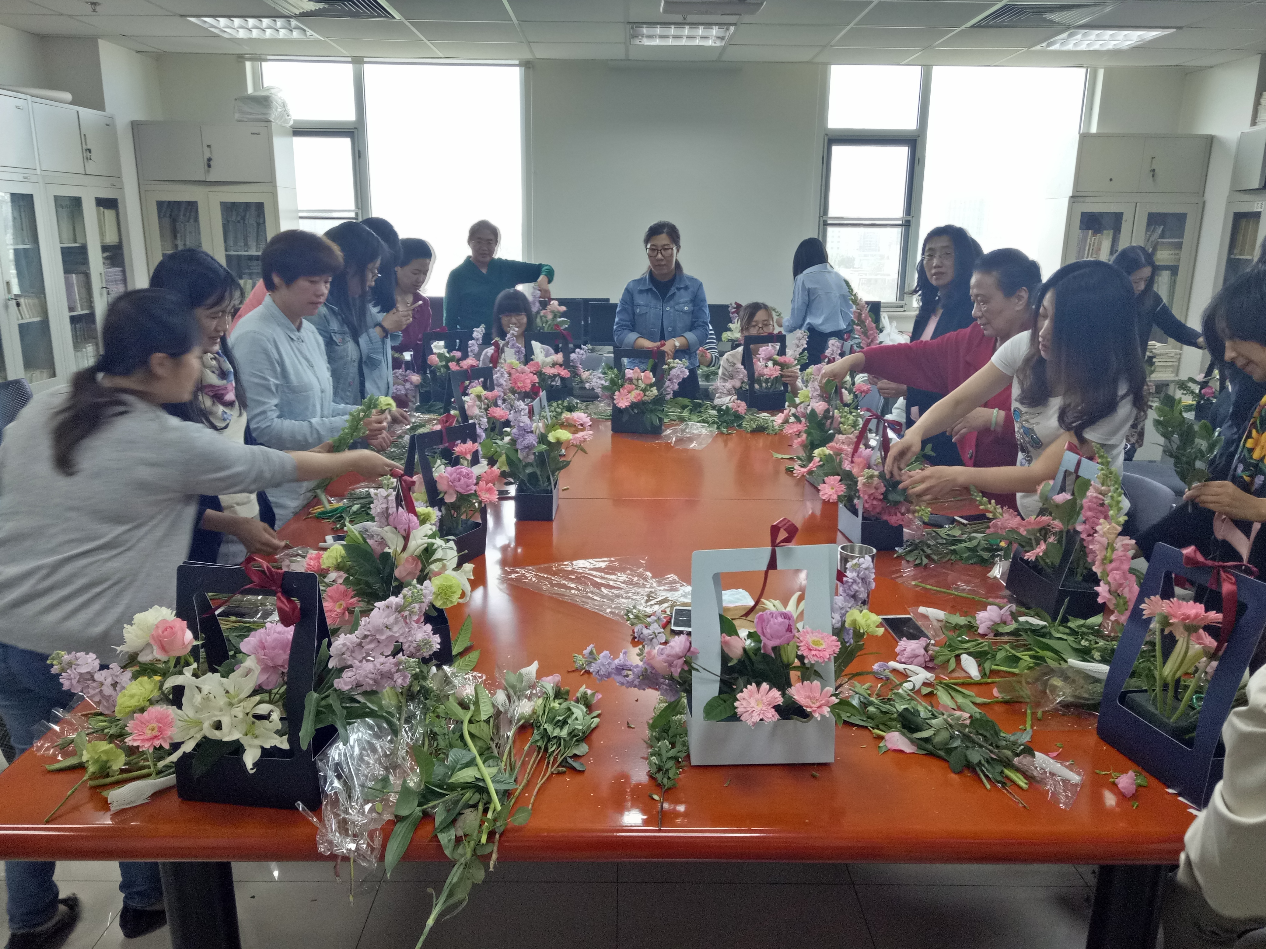 插花是一种风雅脱俗、高品位的艺术活动,它不仅可以美化环境,还可以净化人的灵魂,提高人的品位与修养。李老师向大家细致地讲解了插花艺术的基本知识、插花的由来、插花造型、器具、色彩应用及花的品种等内容,并亲手示范多种造型的插花,将中国传统的插花艺术生动地展现在每个女教师面前。刘娟书记和郭乙瑶副院长以及参加活动的二十多名老师,纷纷对传统插花表现出了极大的兴趣,兴致盎然地练习插花技艺,每个人在老师的指导下都完成了一件件精美的插花作品,展现了靓丽的“外文风采”。
