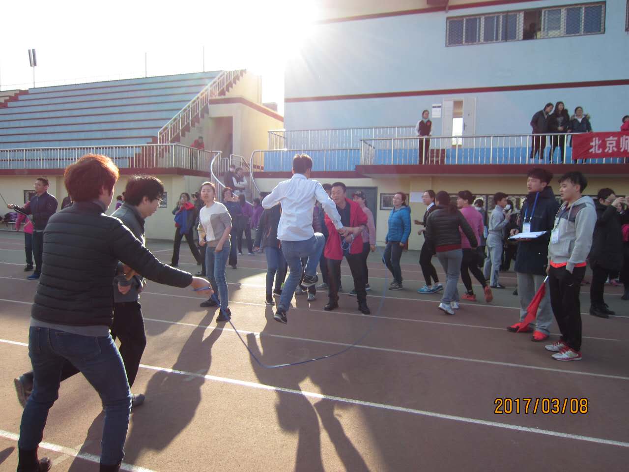 3月8日下午,在校工会组织的“三八国际劳动妇女节”跳大绳比赛中,我院代表队发挥出色,一个没跳坏,以三分钟286个跳绳的优异成绩喜获全校第7名,荣获团体一等奖!