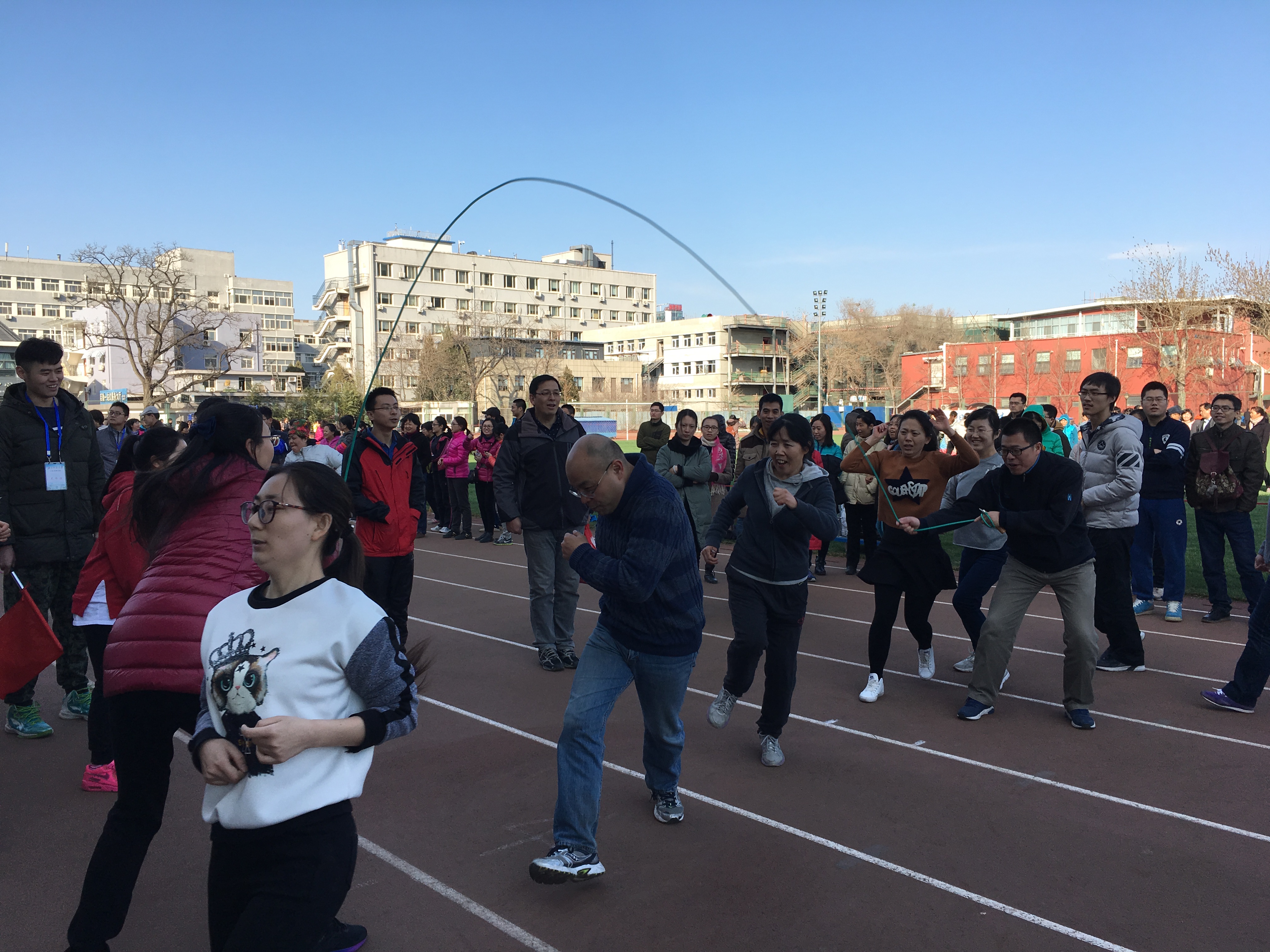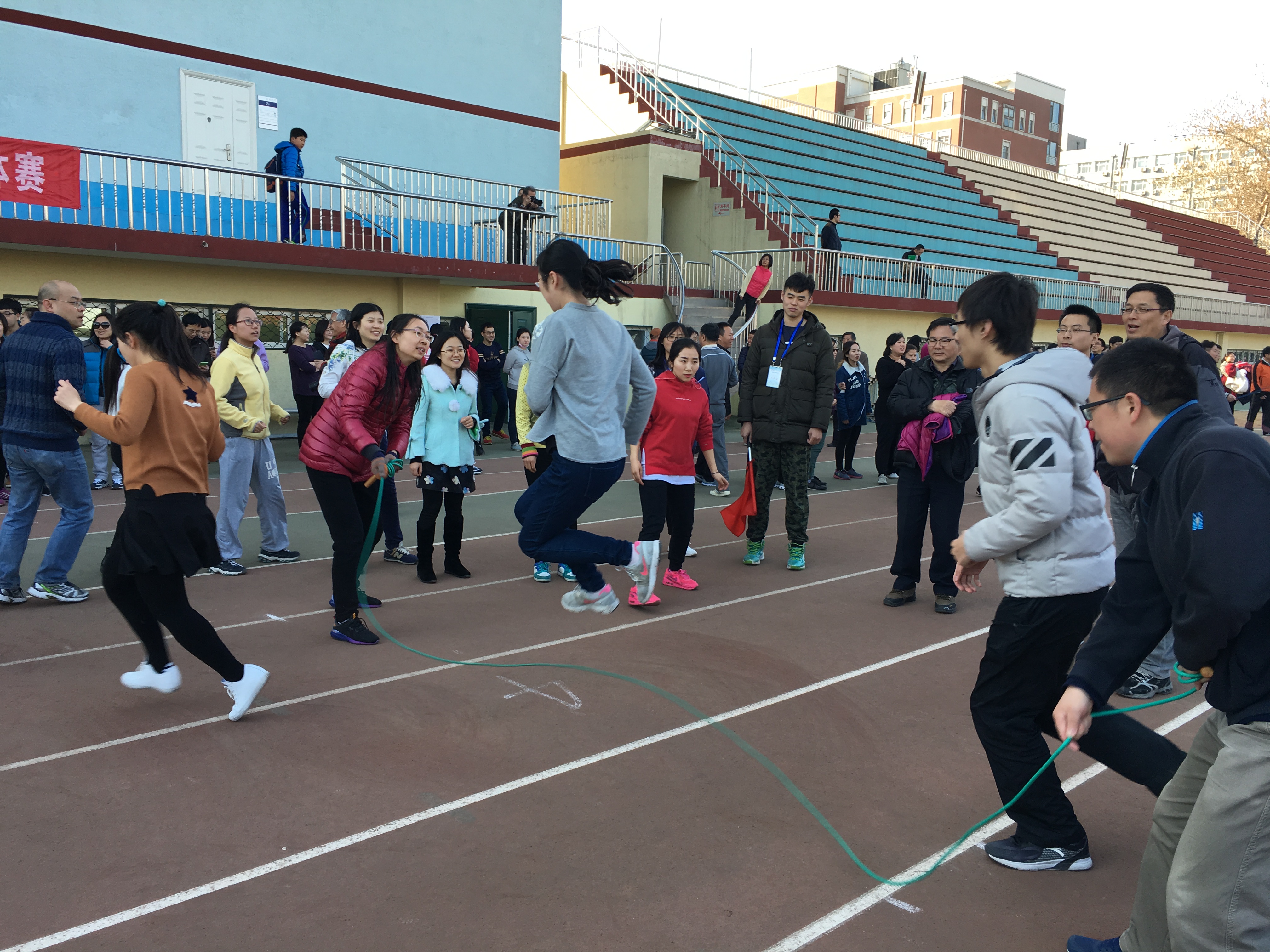 2017年3月8日下午,校工会在东操场举办了庆“三八国际劳动妇女节”团体跳绳比赛,我院获得了三等奖。为了迎接此次比赛,我院工会组织教师赛前积极备战,所有参赛选手都认真对待每一次练习,在训练中提高了自身的跳绳水平,培养了相互间的默契,增进了感情。在比赛中,大家努力拼搏,默契协作,坚持到底,拉拉队的老师呐喊助威、欢声笑语,大家切实体会到了体育锻炼和团体活动带来的乐趣。在大家的共同努力下,我院参赛选手发挥出了较高水平,取得了好成绩。这次活动在锻炼身体的同时也提高了老师们的团结意识和协作精神。