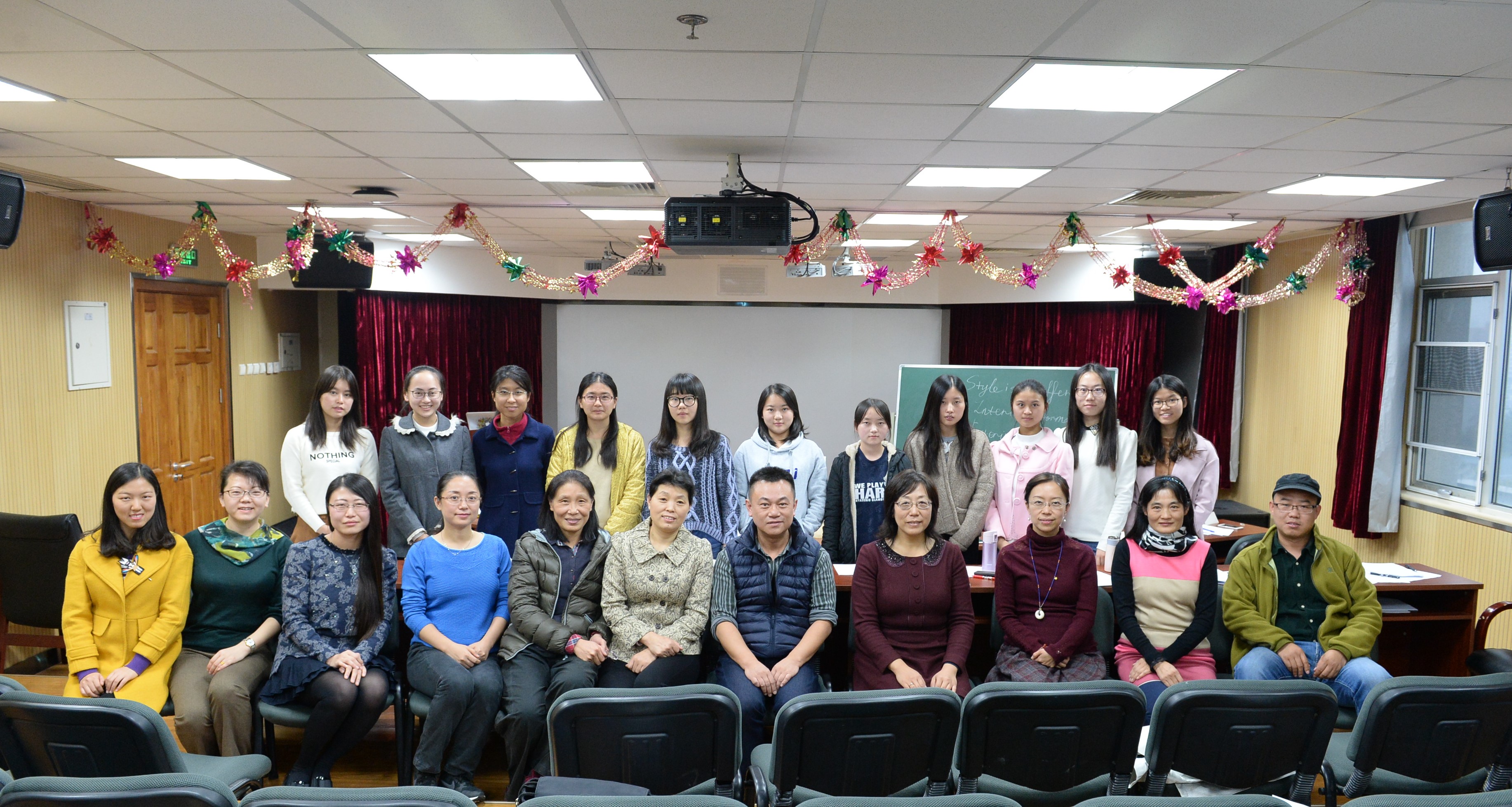 感谢老师们:刘娟、林洪、王炎华、穆新华、于晖、杨庆云、徐学峰、王楠。感谢同学们:本科三年级的12名学生志愿者配合课堂教学以及外文学院教学法方向的两名研究生观众评委。