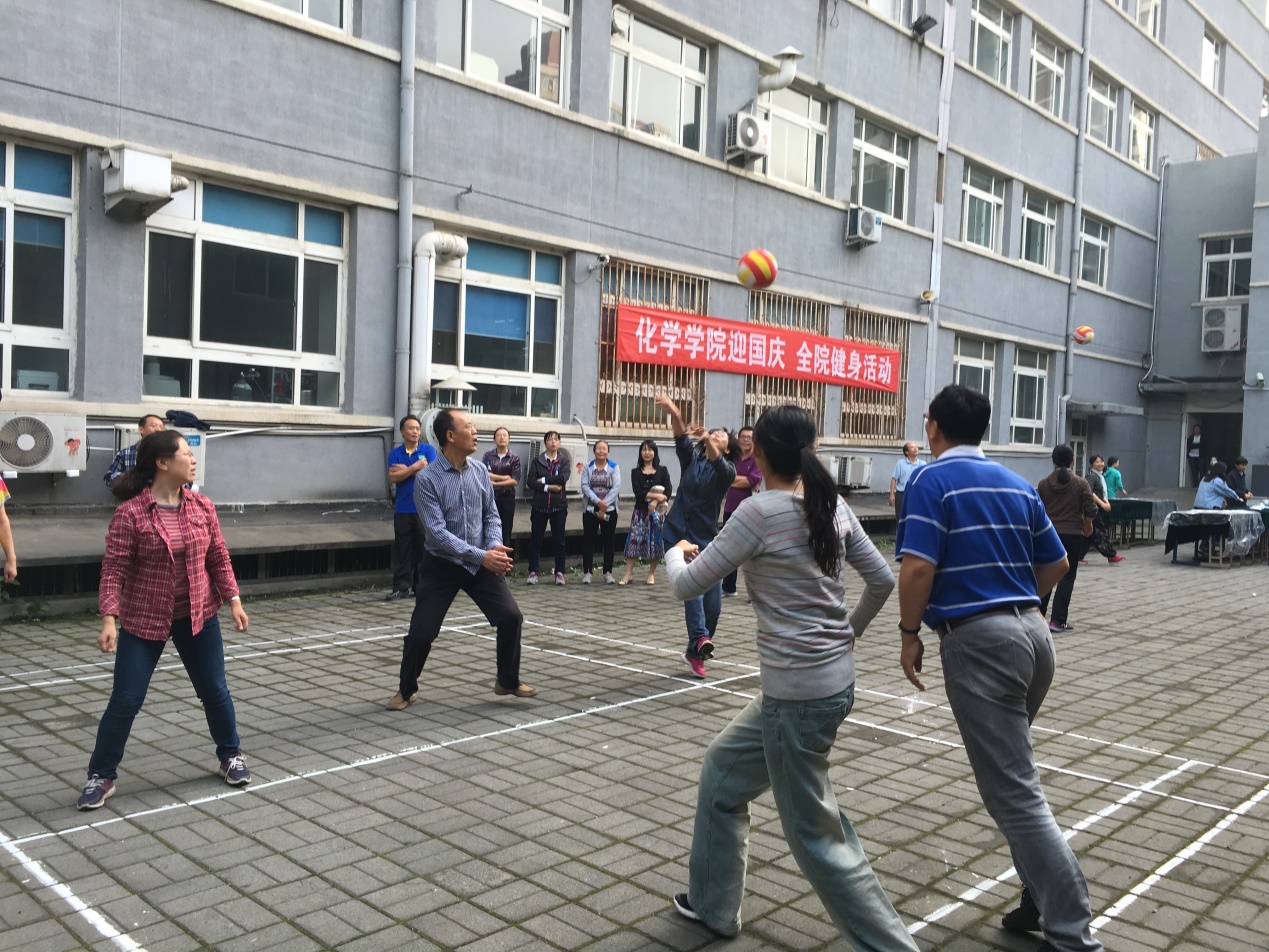 9月30日下午,在第六十七个国庆节来临之际,化学学院工会在化学学院东小院举行“迎国庆,全院健身”活动。全院教职工积极参加,享受秋高气爽,空气清新的快乐时光。