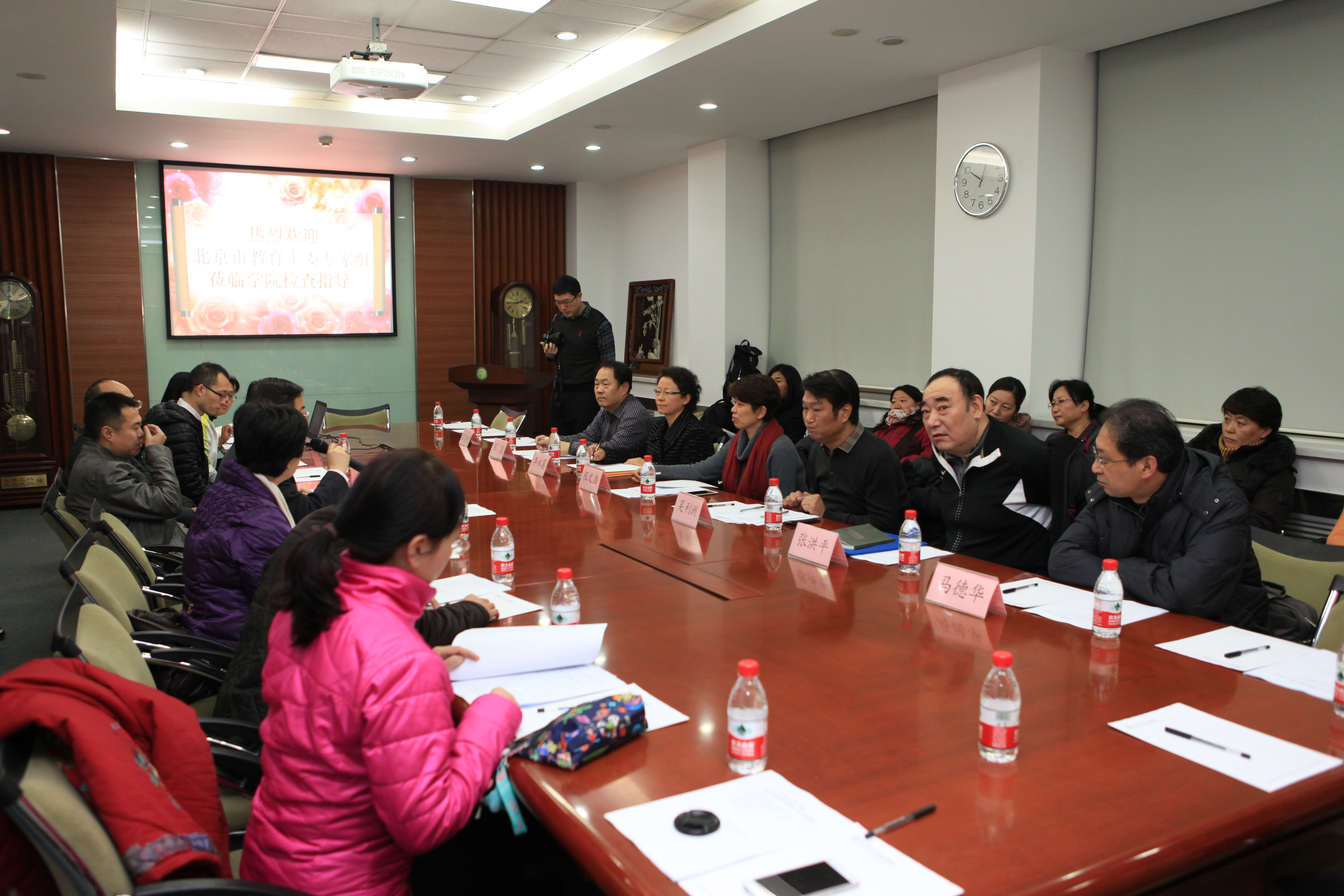 2015年11月27日上午,北京市委教育工委专家组莅临我院进行了2015年度北京市先进教职工小家验收工作。校工会王琼主席及验收组专家等一行人,以及我院院长王英典,分党委书记张朱博,研究生教学副院长翟永功,行政副院长张兰,工会主席林魁,分党委副书记陈金波以及工会委员、小组长等人出席了验收会议。