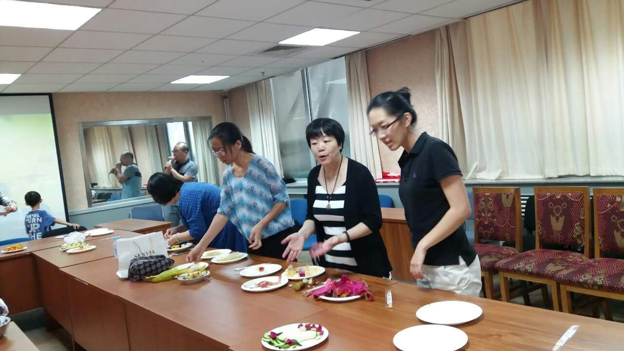 2016年6月12日下午4点~6点,文学院工会在文学院教工活动室(主楼B708)举办了“温馨六月合家欢”的活动,邀请全院教师共庆端午节后的美妙时光。本次活动举办了文学院第一届教职工水果拼盘大赛,各位老师踊跃报名,以家庭为单位,自备食材,开动脑筋,发挥想象,通力合作,展现创意。参与现场活动的全体人员作为评委,对水果拼盘作品进行投票,评出了最佳创意奖、最佳视觉效果奖和最佳现场创作奖等,文学院分党委书记王立军教授、院长过常宝教授和院工会主席周晓文教授分别为参赛教师颁发了纪念品。