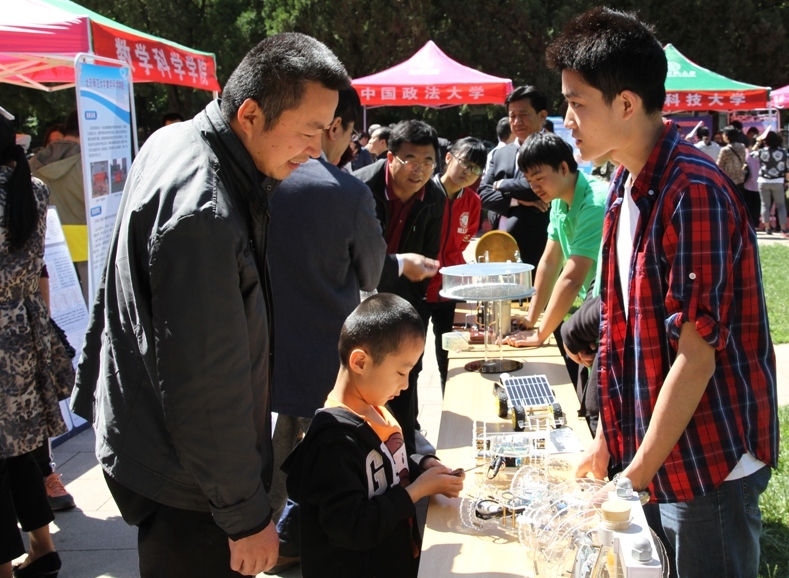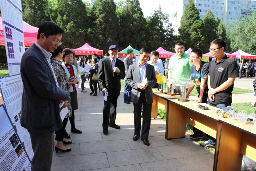 5月15日,学校一年一度的校园开放日在京师广场举行。物理系党政对这次活动非常重视,分党委、系行政班子在京成员均到达现场进行宣传,给家长介绍物理系的情况及历年招生情况。物理系学生展出了自行开发的磁流体、磁悬浮陀螺、机器人等演示装置,吸引了大批中学生和家长的关注。董奇校长和史培军副校长等校领导亲自到物理系咨询台视察,了解物理系开放日的活动情况,并对学生展出的演示装置给予好评。