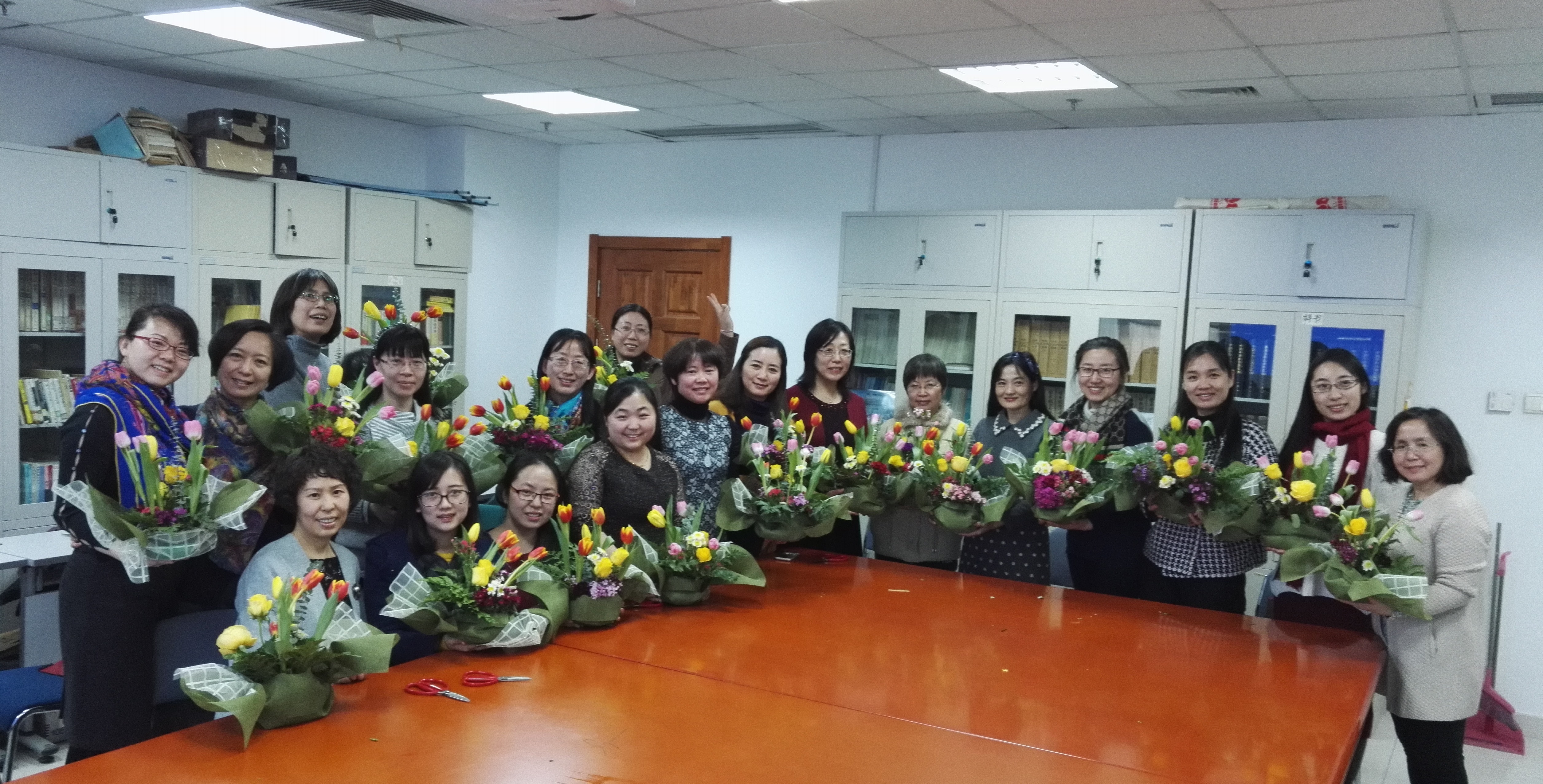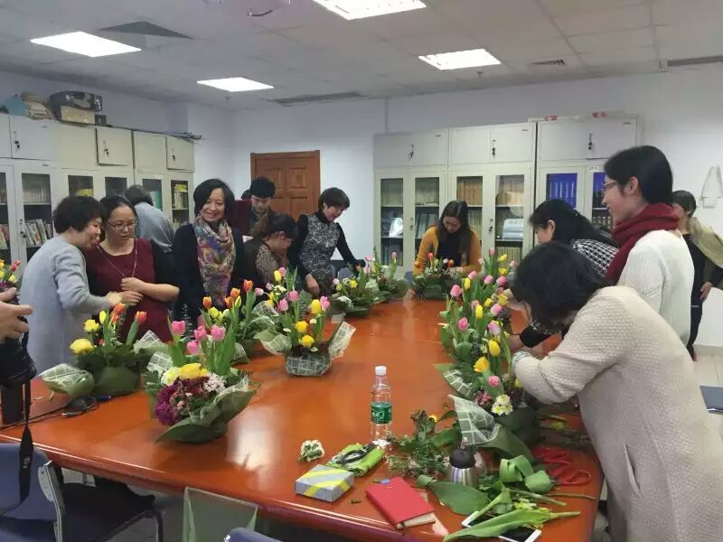 为了迎接“三八国际劳动妇女节”,活跃教师们的业余文化生活,由院书记刘娟老师和工会主席王楠老师、副主席杨庆云老师组织,3月8号,我院教师20余人参加了校工会组织的跳绳比赛,并且荣获三等奖;3月11号,我院工会又邀请到“童芯”花坊工作室的童春华女士,给学院女老师们开展了“春暖花开,女人如花”——插花艺术审美讲座和实践活动。参加活动的老师们纷纷对传统插花表现出了极大的兴趣,兴致盎然地练习插花技艺,每个人在专家的指导下完成了一件件精美的插花作品,为“三八”妇女节增添一道亮丽的风景线。