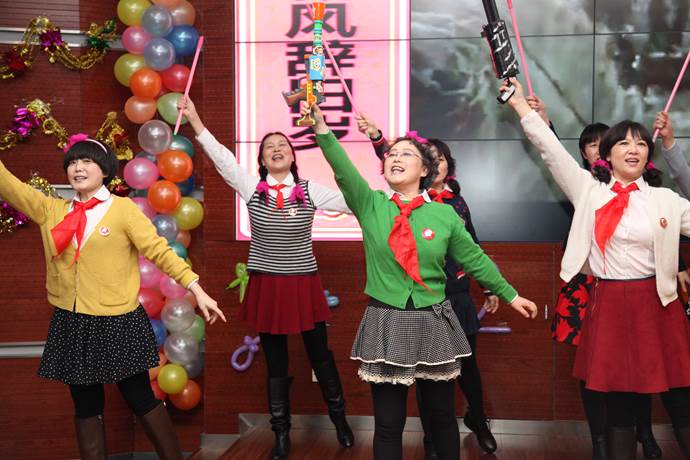 60后的“忆青春”节目闪亮登场,她们扎着时代特色的两根麻花辫,带着鲜红的红领巾。在《火车向着韶山跑》、《接过雷锋的枪》、《让我们荡起双桨》、《红星歌》歌舞表演中,让人感受到60后扑面而来的热情奔放和活泼欢乐。她们的节目让现场顿时沸腾了,掌声欢呼声一浪高过一浪,观众们纷纷拿出手机,拍摄精彩画面,记录精彩瞬间。