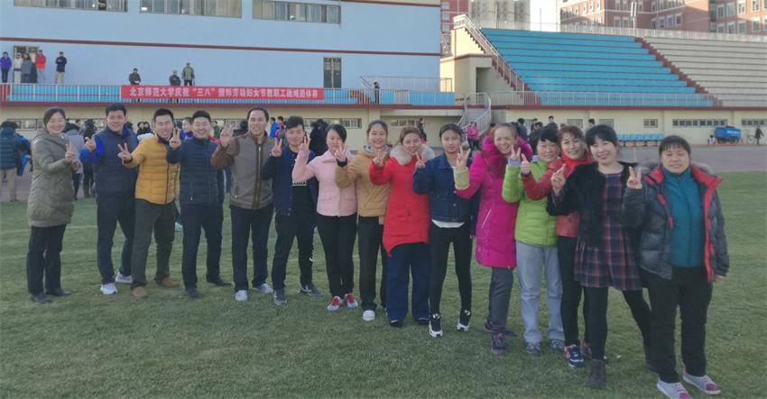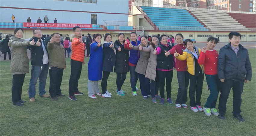 为庆祝106个“三八国际劳动妇女节”,2016年3月8日下午,北京师范大学校工会在东操场举行了一年一度的教职工跳绳团体赛。来自全校46个部门工会的55支代表队,共800余名教职工报名参赛。资产经营公司第一次组织了3支代表队参加比赛,每队15人。经过一番激烈角逐,资产经营公司3队脱颖而出,荣获一等奖,这是多年来在校工会组织三八跳绳大赛中首次获得一等奖。