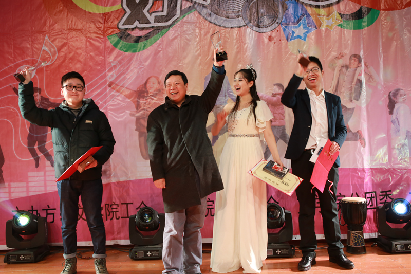 除了10位选手竞演,文学院老师也登台献声。赵曦老师的京剧《霸王别姬》选段、谢琰老师的《当你老了》、钱翰老师的《月半小夜曲》及孙银新老师日语版的《北国之春》,引爆全场。
