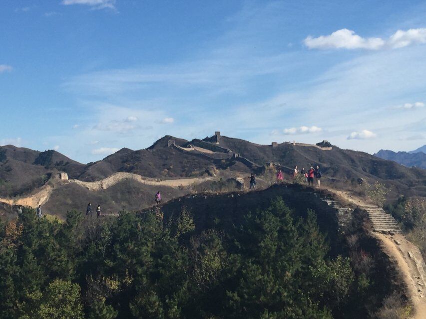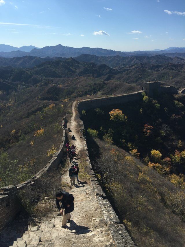10月28日北京的天气特别晴朗,当我们乘车到达蟠龙山景区时已是上午10点多钟。这里阳光和煦,空气清新,略显冷清的景区环境使人感觉“心”一下子静了下来。我们一行沿着还算平缓的栈道拾级而上,抬头望去,古老的长城已映入眼帘。迫不及待的年轻老师早已登临制高点,为我们这些还在爬坡的老师们呼唤、加油、拍照。站在长城上远眺,偶见山涧炊烟袅袅,想必是农家大嫂在为我们准备可口的午饭了。