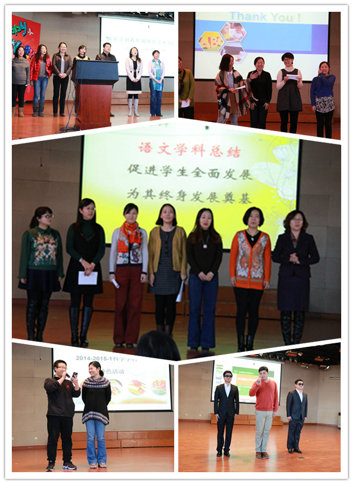 周这个最长的学期,老师们付出了辛勤的汗水,马校长对学校整体工作做了总结,随后各学科教研组、年级组汇报了本学期开展的教育教学特色活动,老师们各展所长,用精美的图片、生动的视频,感动的录音,自编歌曲、三句半的丰富多彩的方式,回味着分享着我们共同走过的历程。