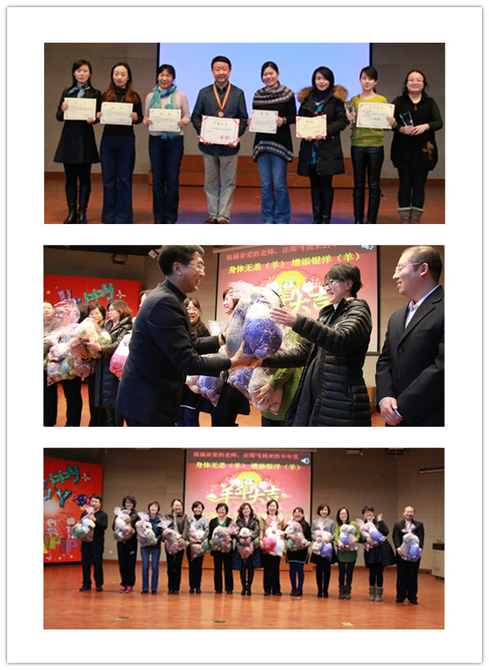 会上表彰了本学期获得各项奖项的教师,表彰工会活动积极分子。全体老师为属羊老师送上新春的祝福。