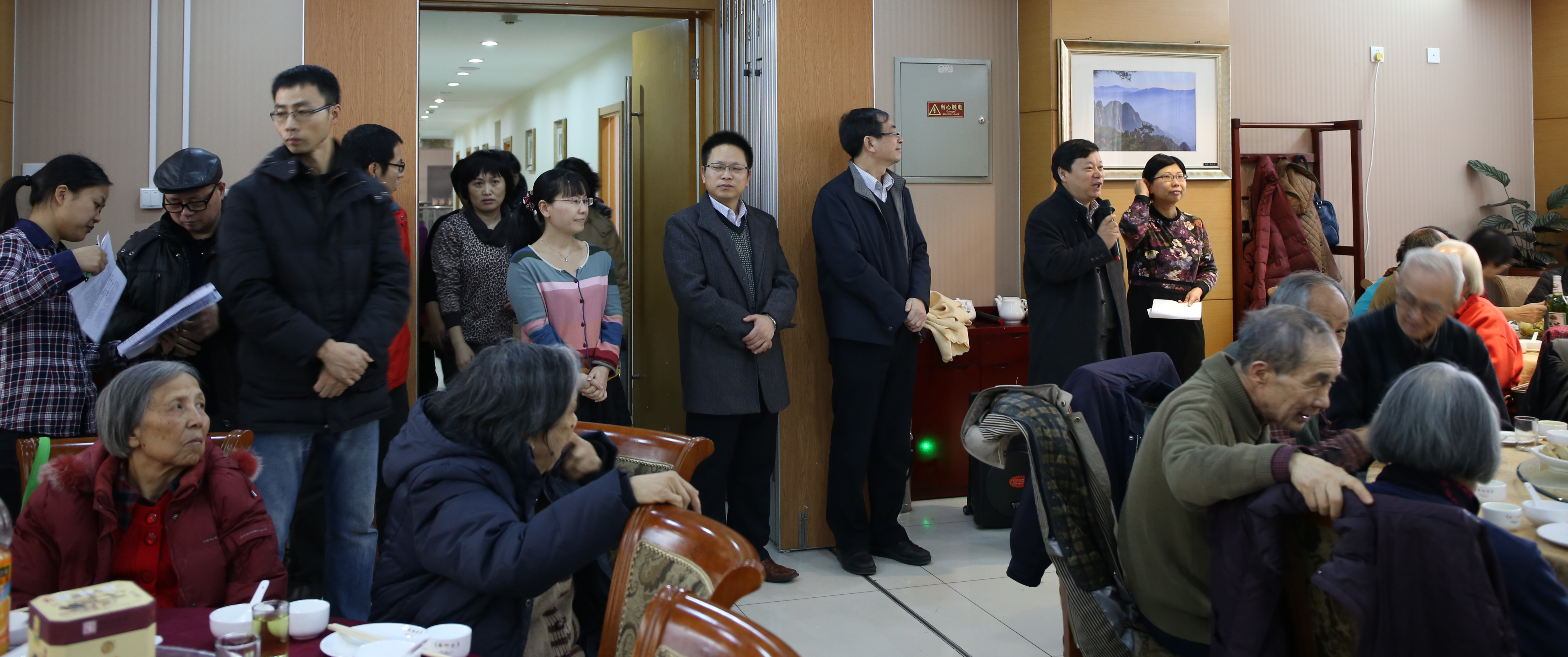 在2015年新年来临之际,文学院工会、分党委、办公室、离退休工作小组于2014年12月23日,在北师大校内举办离退休教师新年团拜会,向全院离退休教师致以新年问候。文学院分党委书记王立军教授和文学院院长过常宝教授分别致辞,感谢离退休教师曾经为学院的发展和建设所做的贡献,向退休老教师介绍了文学院近年发展状况,并祝福全体离退休教师身体健康、新年快乐。文学院分党委方红珊副书记主持本次团拜会,周云磊副书记、姚建彬副院长和马东瑶副院长等院党政领导到场看望老教师。院工会周晓文主席和院办徐宏文主任向离退休教师介绍了离退休工作小组成员和工作分工。离退休教师50余人参加了本次新年团拜会。