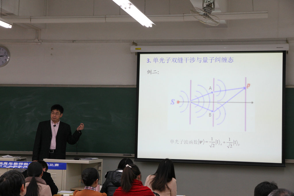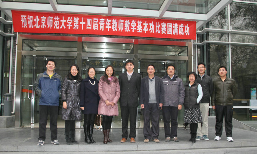 2014年11月15日,由校工会牵头,校工会、教务处、研究生院、人事处、教师发展研究中心等五部门联合举办的北京师范大学第十四届青年教师教学基本功比赛在教九楼举行。物理系领导对比赛高度重视并全程参与赛前指导与现场观摩,参赛选手何琛娟和王海波对比赛做了十分充分的准备,在赛场上完美地呈现了物理系青年教师的风采,最终在青年教师教学基本功比赛中的取得佳绩:何琛娟老师获得本科生教学理工科组一等奖、优秀教案奖以及最受学生欢迎奖;王海波老师获得研究生教学理工科组二等奖。