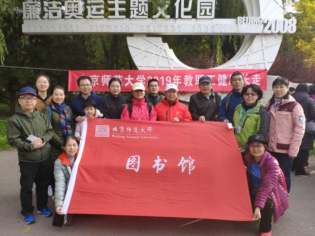 2019年10月26日上午,由校工会组织的北师大教职工健康长走活动在奥林匹克森林公园南园举行。今年的主题为“不忘初心、爱国荣校、热爱自然、崇尚健康”,活动路线从“廉洁奥运主题文化园”起始,按逆时针方向沿5公里红色塑胶健身道行进,经过两个站点返回终点。