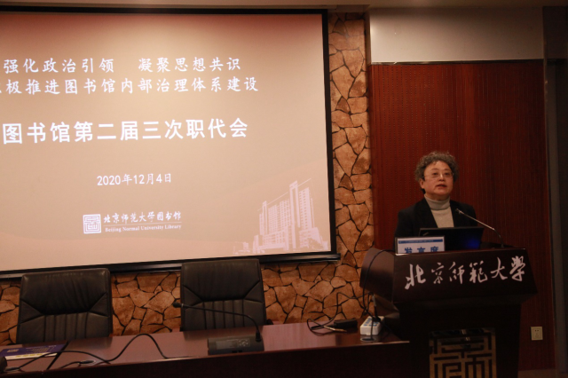 王琼馆长在报告中系统总结了2019-2020年图书馆重点工作和财务收支、保障情况,特别是2019年开展主题教育以来图书馆强化内部治理体系、提升治理能力和师生满意度的主要成效,以及2020年以来部署疫情防控和有序推进本年度重点工作、服务师生的重要举措。她还深入分析了图书馆目前在发展中存在的主要问题,指出要进一步明确发展思路,完善制度建设,创新工作机制,激发馆员热情,提高工作效率,加强统筹协调和监督落实,共同推动图书馆的发展,为学校“双一流”建设提供强有力的文献资源保障。执委会主任卿蔚报告了第二届二次职代会提案办理情况和第二届三次职代会提案征集情况。本次职代会共收到代表提案3件,经执委会审议,立案3件。