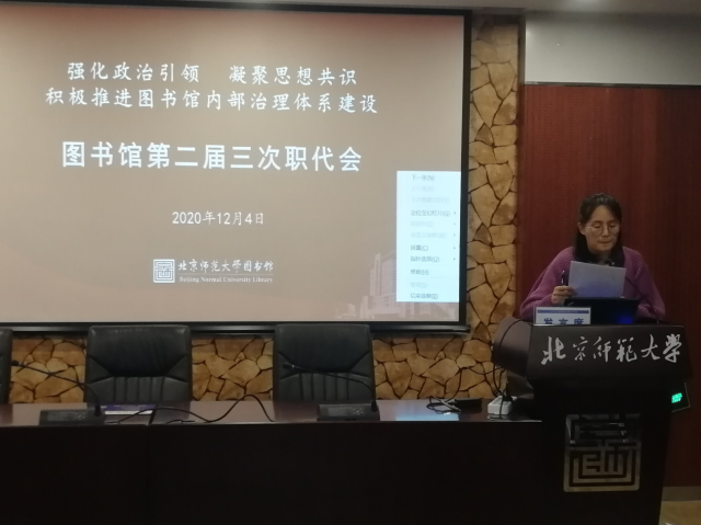 王琼馆长作《图书馆工作报告》《2019年度图书馆财务决算和2020年度财务预算报告》