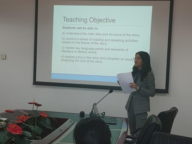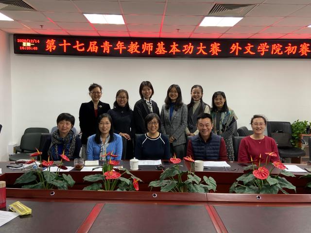 2020年12月14日,外文学院工会成功举办第十七届青年教师教学基本功大赛预赛。本次大赛有四位青年教师参赛。初赛邀请了学院七位教师担任评委。来自艺传、生科等学院的老师到场观摩。