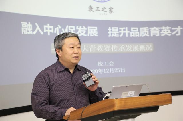 王立军在致辞中指出,青教赛为青年教师们的全方面成长提供机遇,也将为神圣的教育事业树立新的典范,希望即将参赛的各位教师怀着对讲台的敬畏,勇敢拼搏,获得佳绩。