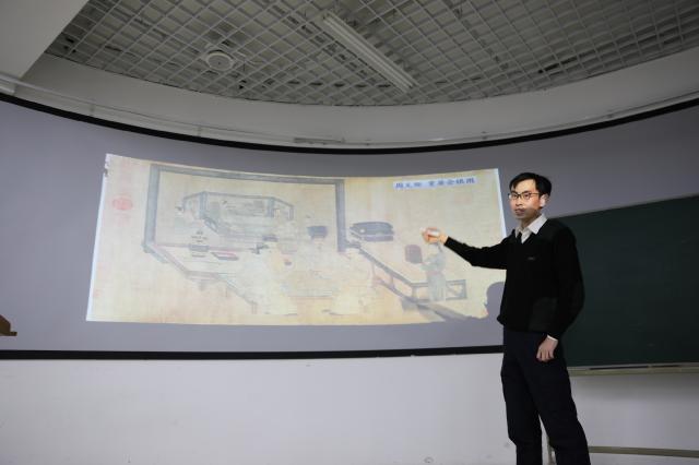 参加本次预赛的6名青年教师,均报名参加本科生教学文科组的比赛。他们分别进行了2分钟的教案介绍和15分钟的教学技能展示,以实际课堂教学为基础模式,重点围绕教师们的基础知识、演讲技巧、设计能力等方面展开。通过还原真实的教学场景,着重考察各位教师的案例选择、文本解读、语言表达、和课堂驾驭等多项能力。白惠元老师以“创作”和“方法”为关键词,按照是什么、为什么、怎么办的逻辑串联课程,用丰富的例子阐述了“灵魂黑夜”的内涵和意义。符鹏老师从日常问题“今天,你读小说了吗”切入,追问图像时代的小说阅读危机,由此引出小说的概念。他用一段视频和诸多例子讲述现实主义和实在论的关系,点明现实主义对小说的重要性。孟跃龙老师通过对“逑”“女”“大”等字的讲解,讲述汉字形体的演变过程,以启发式的教学方法,引导学生从横向、纵向两个维度归纳战国文字的特点,指出当今文字的形体是个性和共性的结合,必然性和偶然性的统一。孙海燕老师对儿童文学中“儿童”的概念做了清晰界定,并以儿童的小诗为例讲解了儿童生命所呈现的主要精神特质。她提出“童年困境”的概念,从多个角度阐释了儿童文学对儿童精神生命健康成长的重要作用。肖汉老师讲解了新中国初期科幻文学的特征,以此为引,结合相关文献,点出本节课的讲解重点即新中国第一部科幻小说《梦游太阳系》,介绍了作者的人生经历,并结合作品的相关段落,讲解了该书的结构和创作特征。诸雨辰老师选取《聊斋志异》中的变幻主题,以《画壁》导入,结合相关文本,引导学生思考作品中时间和空间两条线索,与学生共同欣赏《重屏会棋图》,运用弹幕的互动方式,探讨绘画在文学作品中幻术的作用。