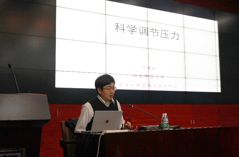 为缓解馆员工作生活心理压力,增强馆员职业心理健康和幸福感建设,2020年3月12日,图书馆工会邀请学校学生心理咨询与服务中心常务副主任宋振韶老师,在图书馆三层报告厅举办《科学调节压力》讲座。
