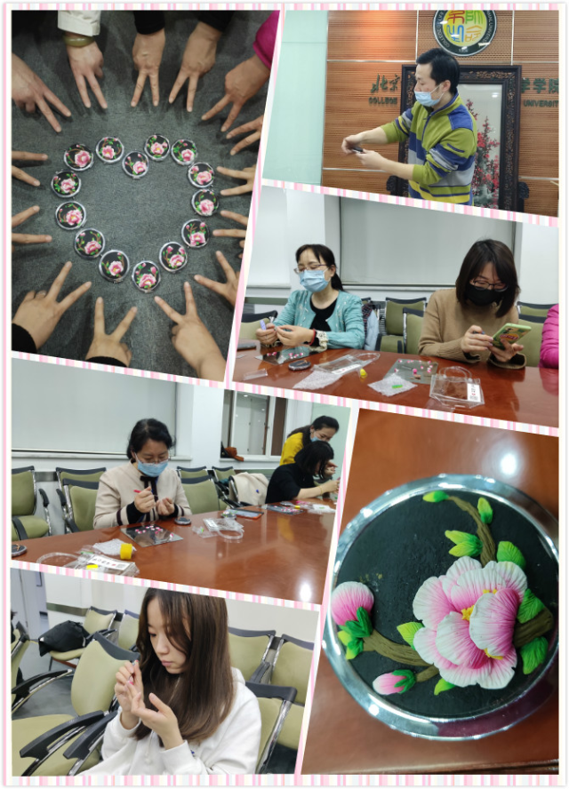 在“三·八”国际妇女节来临之际,为营造出健康、和谐、积极向上的节日氛围,帮助女教工在这个属于自己的节日里,放松一下,浪漫一下,学院工会组织开展了牡丹花装饰镜手工制作体验活动。