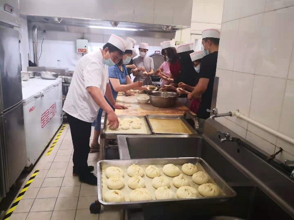 2021年春季学期,汉语文化学院和餐饮服务中心联合举办了教工面点学习班。由于大多数老师是初次接触面点的学习,本学期工会安排老师们学习了兰惠餐厅的肉饼和实习餐厅的包子的制作,时间是在学期中和学期末,学院二十余位教师参加了学习。