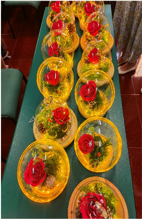 9月8日下午,学院工会在生地楼129教室举办了庆祝教师节手工陶艺花制作活动,二十多位报名参加活动的教师准时来到教室。学院工会主席孙一娜首先向在场的老师们送上了节日的祝福。随后,老师们在陶立方工作坊两位老师的耐心示教和指导下,一步一步精心制作着美丽的红色玫瑰花。从黏土的揉搓、碾压,到花瓣修边、定型,老师们全身心的投入到制作活动中,暂时忘却了工作的烦扰,收获了短暂的放松。最终,每位老师都制作完成了自己的手工花艺作品,花映美人脸,笑嫣如花红。