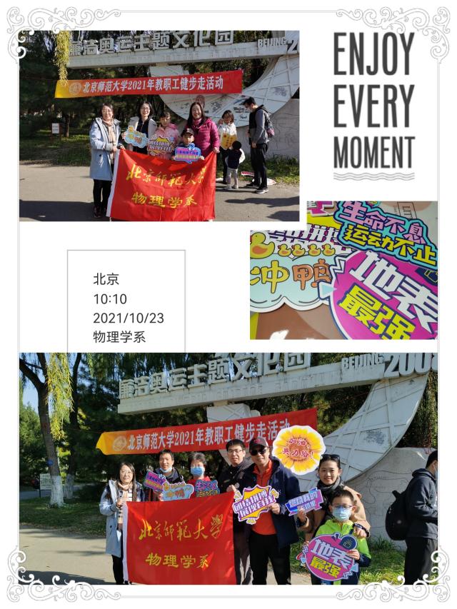 物理学系部门工会积极响应校工会奥森健步走活动号召,广泛宣传,精心组织,共有28位教师热情参与了10月23日的奥森健步走活动。大家迎着飒爽的秋风,呼吸着清新的空气,沐浴着灿烂的阳光,欣赏着奥森的美景,享受着运动的舒畅,老师们欢乐的笑容,汇聚成了奥森公园一道道靓丽的风景线。系工会还准备了精心设计的加油牌,满载着澎湃的激情,给老师们助威鼓劲。一路走来,老师们结伴而行,相互鼓励,以一种团结互助、永不言败的精神,圆满完成了此次健步走活动,充分展现了物理学系顽强拼搏、积极向上的精神风貌。
